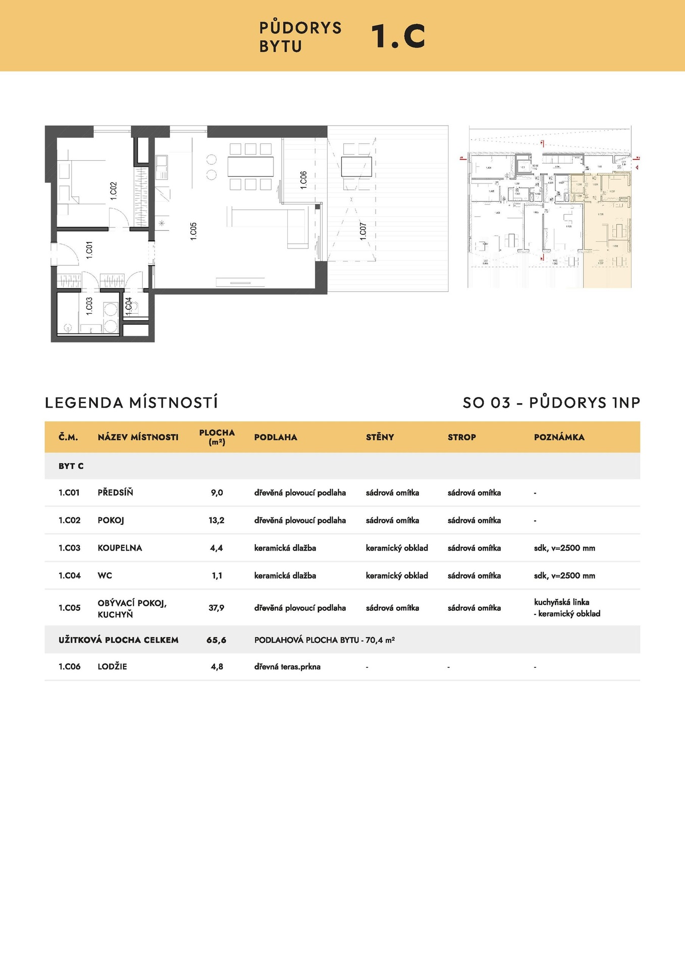 | NB-B1B | 3+kk | přízemí | 82 m2 | 87 m2 | 66 m2 / Ne / 9 m2 | Ne | Rezervováno | Detail |