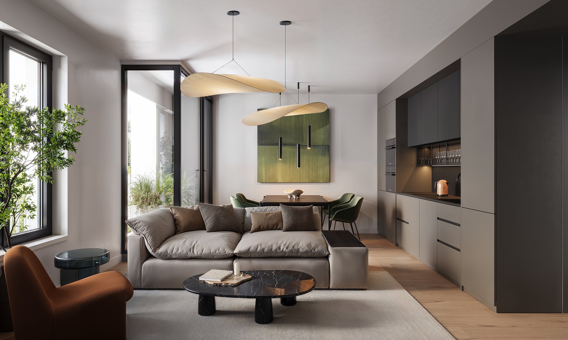 V případě zájmu je možné objednat si za zvýhodněné ceny kompletní zařízení bytu v různých cenových kategoriích, stylu a designu. Tato nabídka bude zahrnovat vybavené kuchyně, osvětlení, nábytek do všech pokojů, stínění či závěsy a mnohé další. Budou se vám věnovat specialisté od počátku až po dokončení bytu dle vašich individuálních představ.