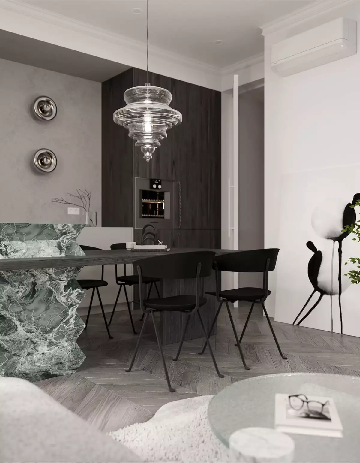 Plocha jednotky celkem činí 50,3 m², byt je navržen ve vysokém standardu. Obytný prostor doplňuje dřevěná podlaha FREVINI MONACO, pokládaná ve vzoru chevron. Interiérové dveře kombinují klasické dřevěné prvky s ocelovými skleněnými dveřmi se strukturovaným a čirým sklem, čímž podtrhují moderní charakter prostoru. K bytu náleží sklep.