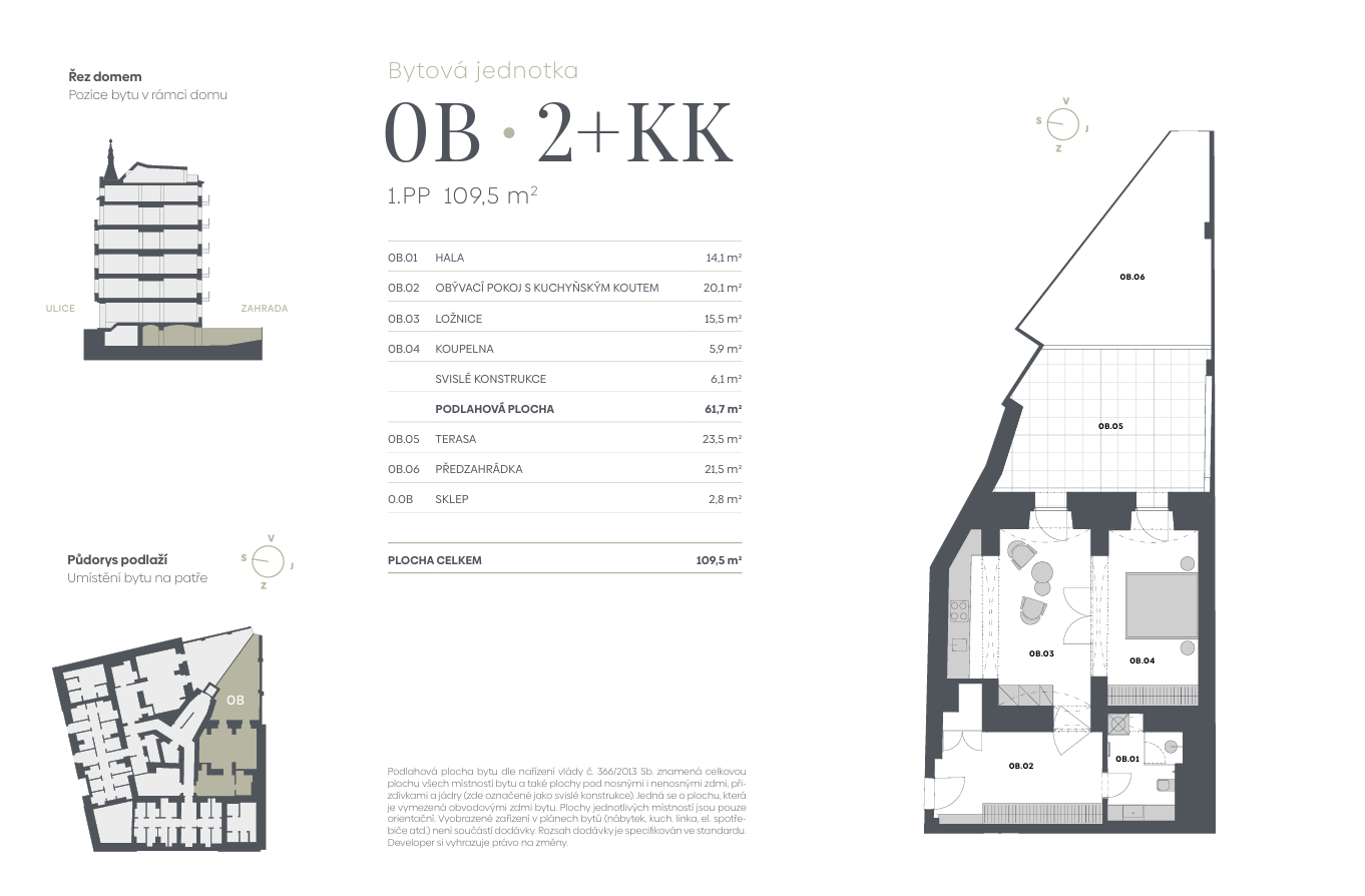 | SL-0B | 2+kk | 1. podzemní podlaží | 62 m2 | 24 m2 / Ne / Ne | Ano (22 m2) | 23 564 150 Kč | Detail |