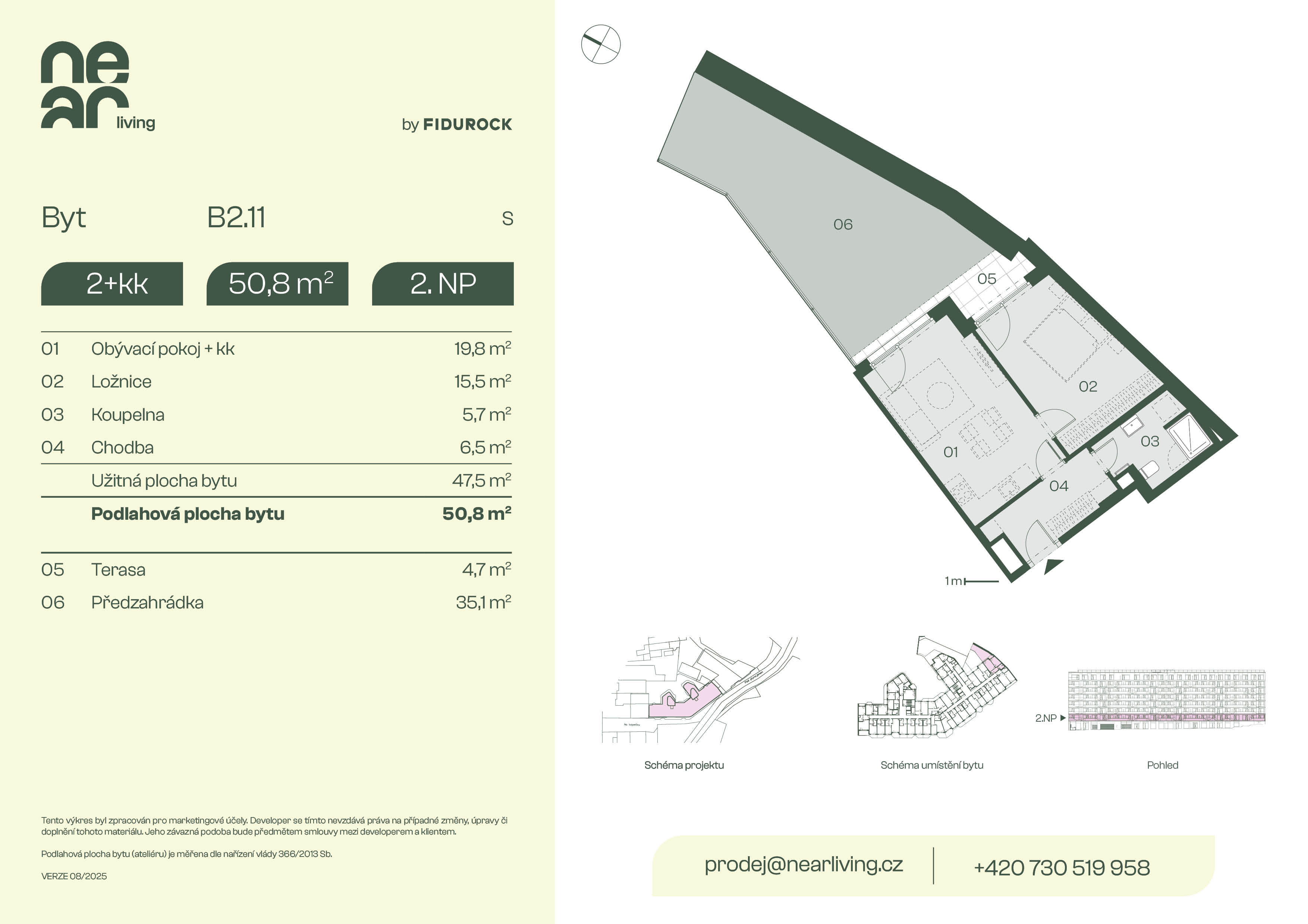 Nabízíme k prodeji byt 2+kk o podlahové ploše 50,8 m² s terasou 4,7 m² a předzahrádkou 35,1 m² v developerském projektu NEAR living v Praze 8, vznikajícím na pomezí Palmovky a Karlína.