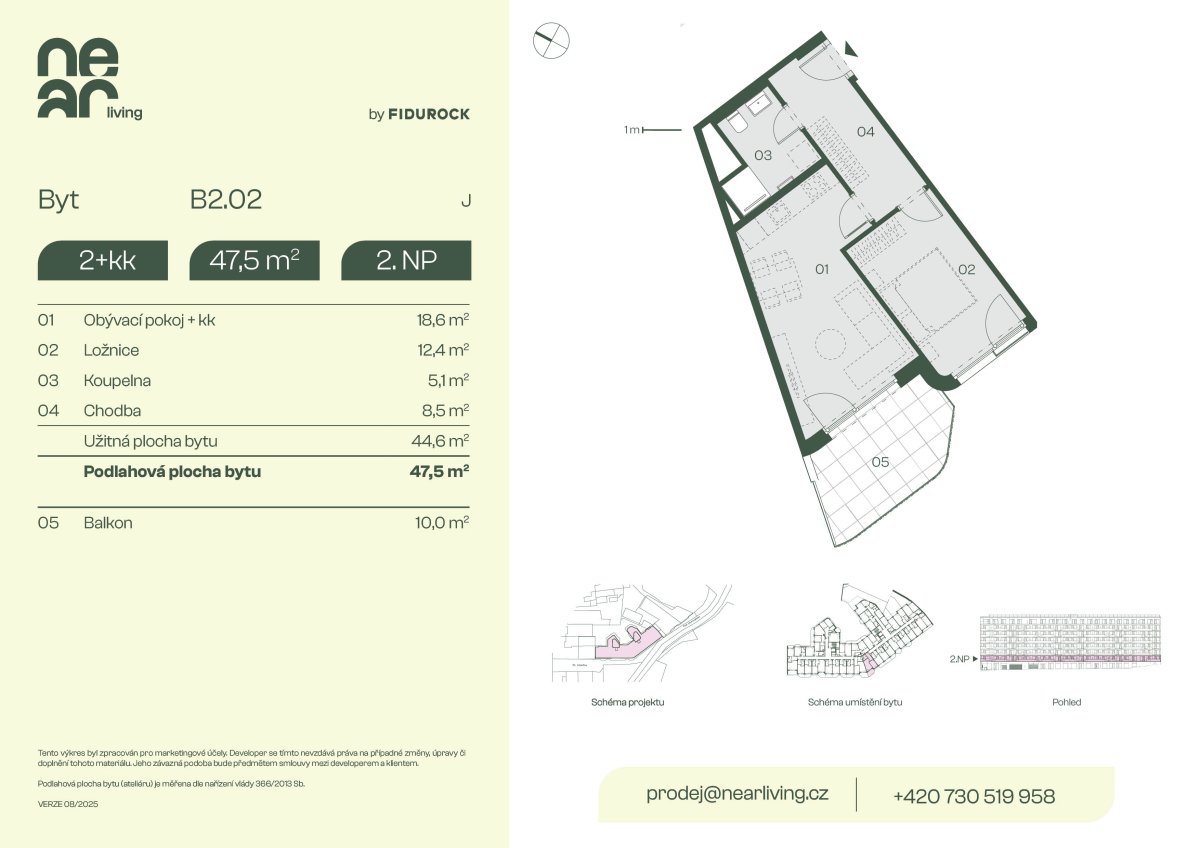 Nabízíme k prodeji byt 2+kk o podlahové ploše 47,5 m² s balkonem 10 m² v developerském projektu NEAR living v Praze 8, vznikajícím na pomezí Palmovky a Karlína.