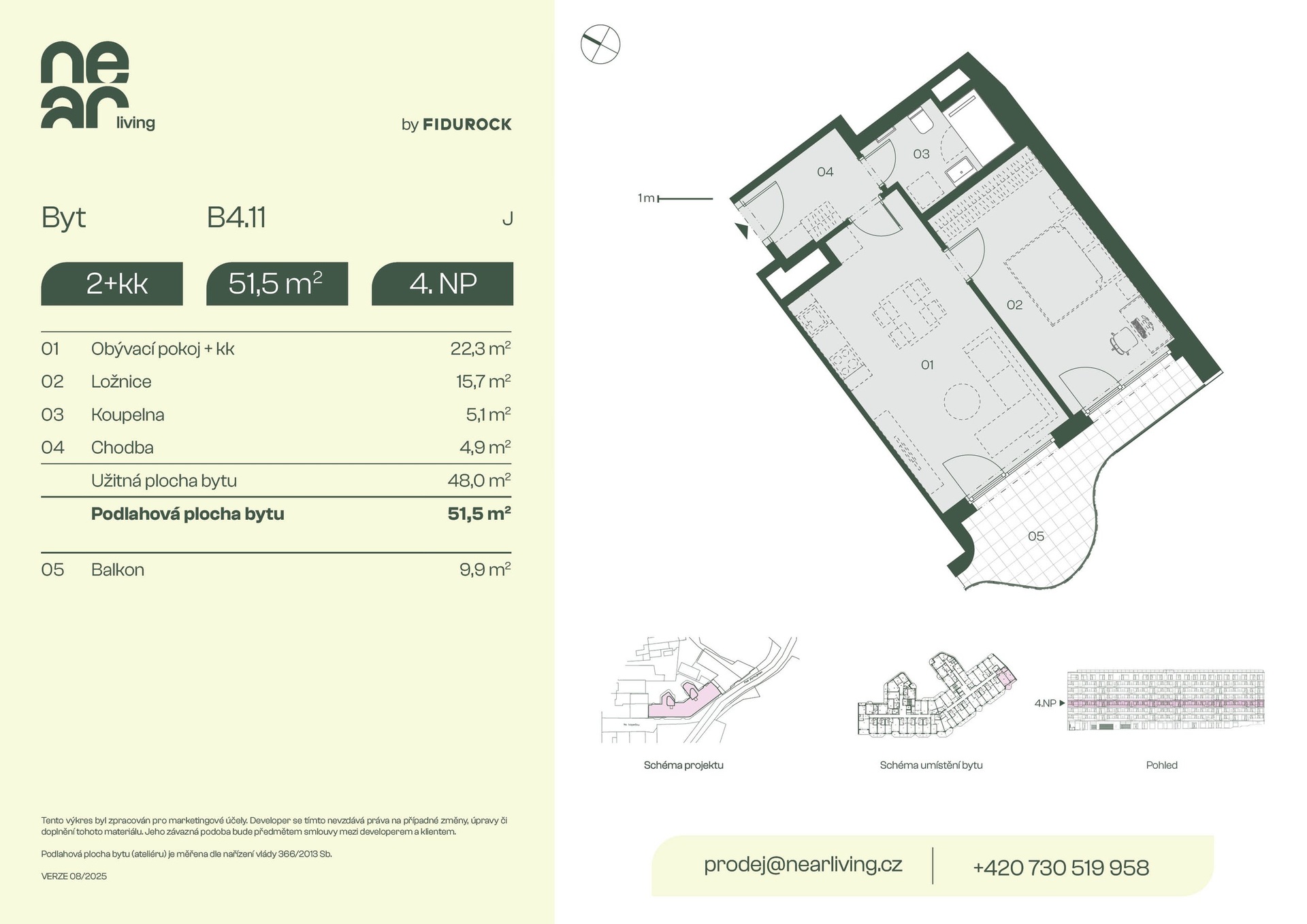 Nabízíme k prodeji byt 2+kk o podlahové ploše 51,5 m² s balkonem 9,9 m² v developerském projektu NEAR living v Praze 8, vznikajícím na pomezí Palmovky a Karlína.