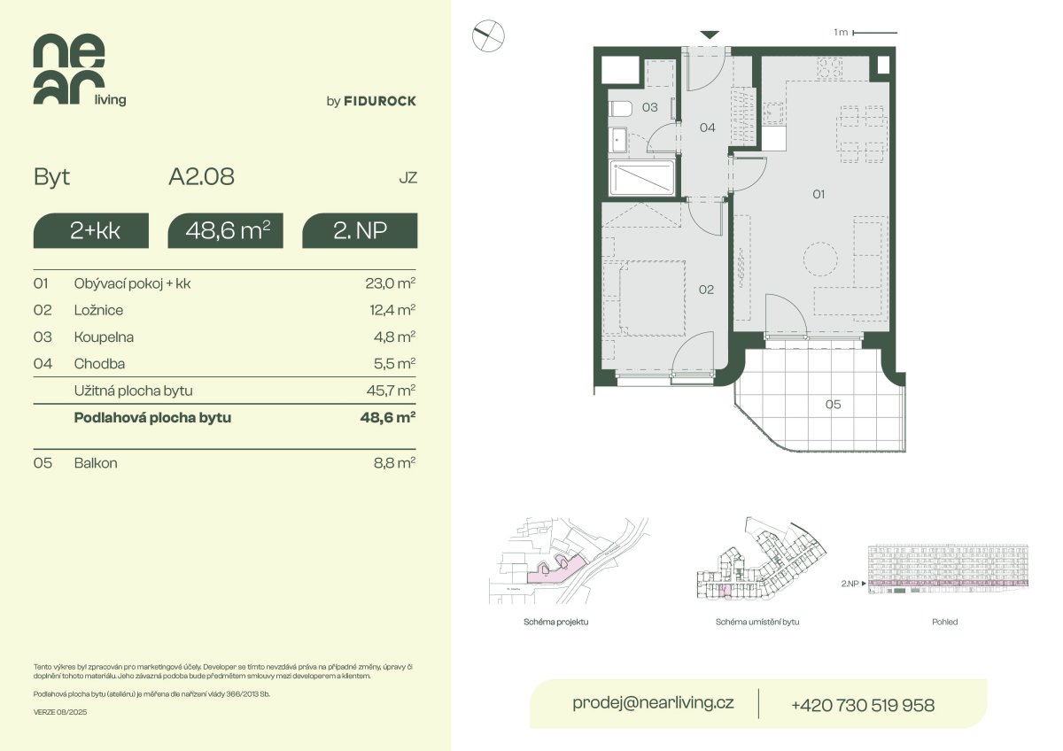 | NL-B211 | 2+kk | 1. patro | 48 m2 | 51 m2 | 5 m2 / Ne / Ne | Ano (35 m2) | 10 148 000 Kč | Detail |