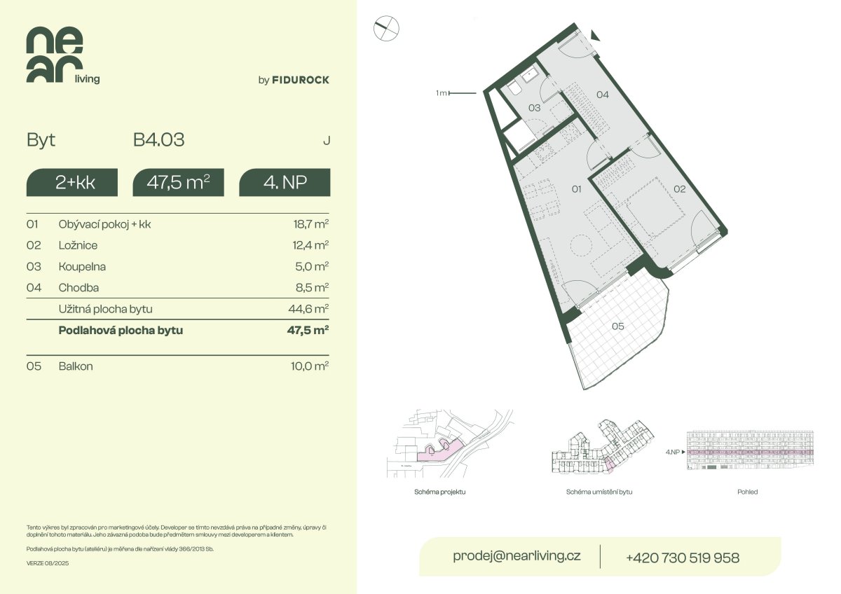 Nabízíme k prodeji byt 2+kk o podlahové ploše 47,5 m² s balkonem 10 m² v developerském projektu NEAR living v Praze 8, vznikajícím na pomezí Palmovky a Karlína.