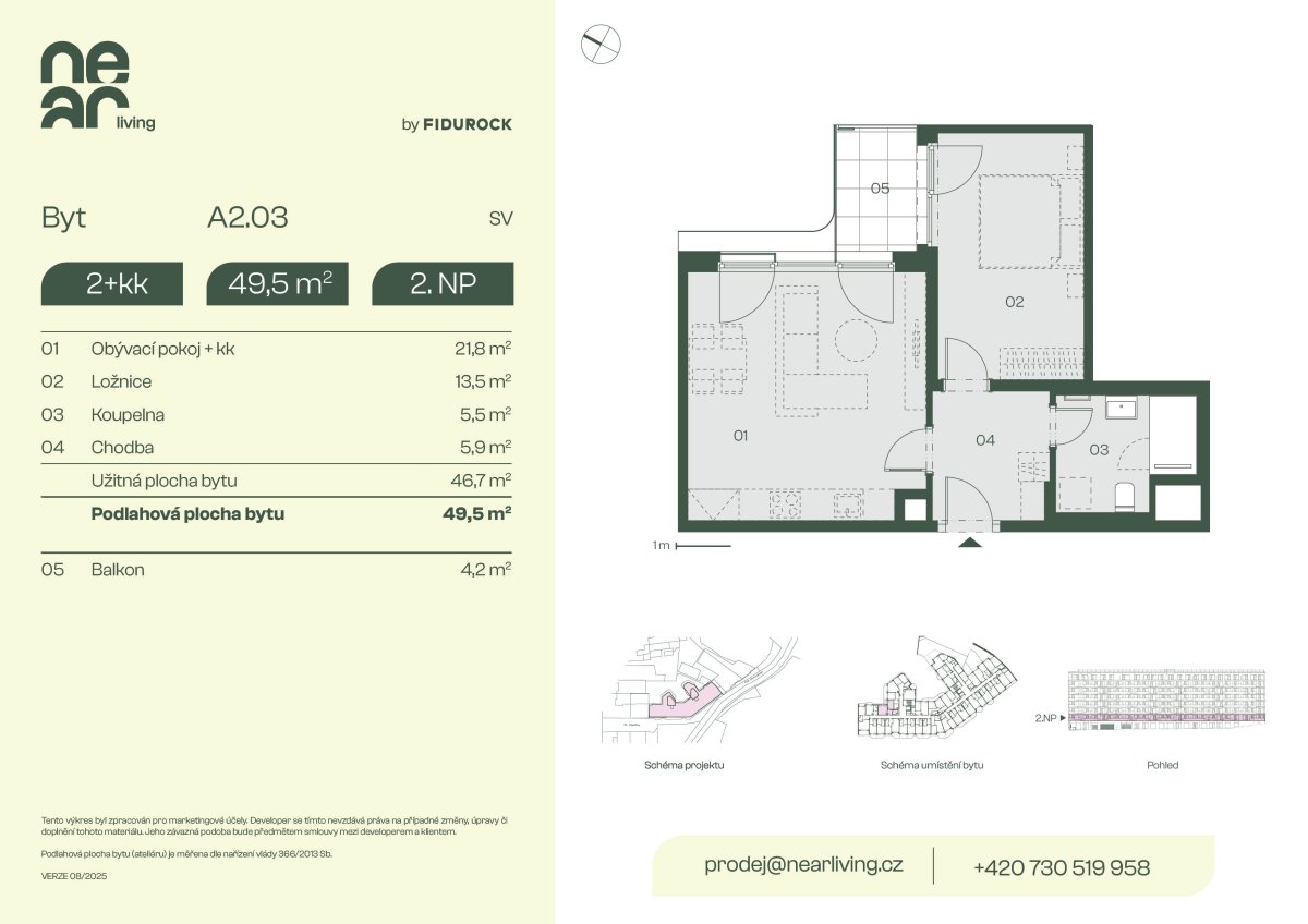 Nabízíme k prodeji byt 2+kk o podlahové ploše 49,5 m² s balkonem 4,2 m² v developerském projektu NEAR living v Praze 8, vznikajícím na pomezí Palmovky a Karlína.