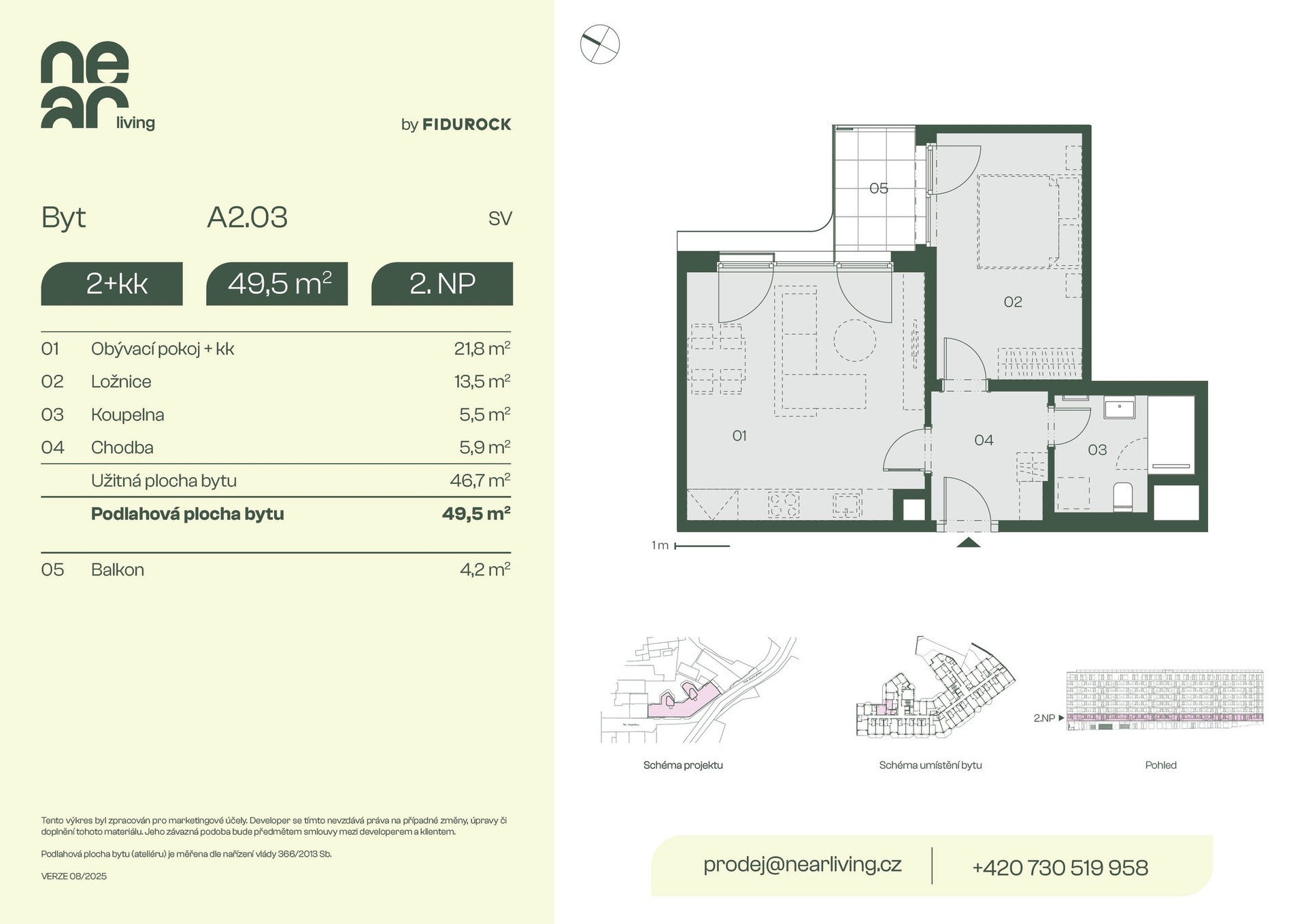 | NL-A208 | 2+kk | 1. patro | 46 m2 | 49 m2 | Ne / 9 m2 / Ne | Ne | Prodáno | Detail |