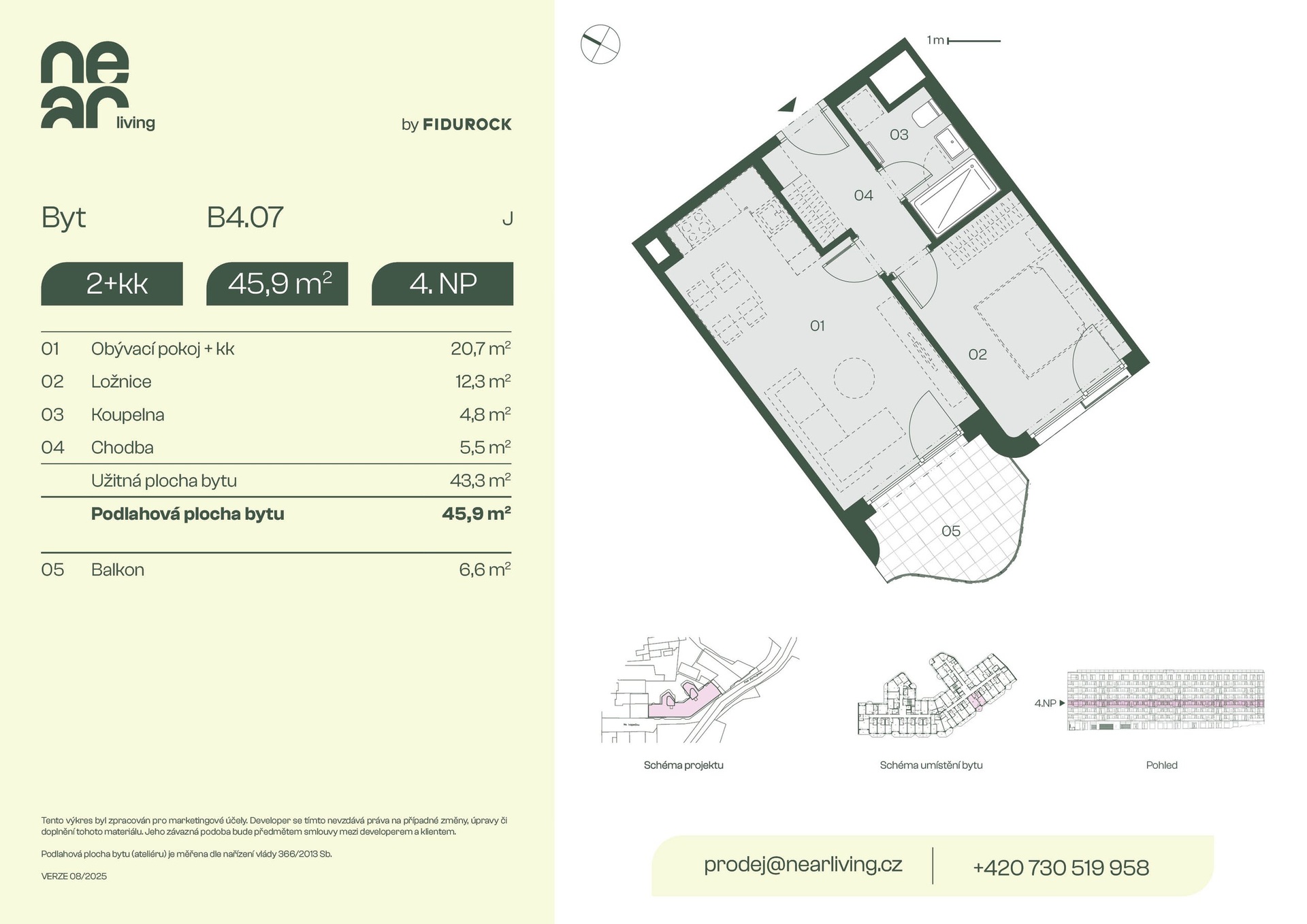 Nabízíme k prodeji byt 2+kk o podlahové ploše 45,9 m² s balkonem 6,6 m² v developerském projektu NEAR living v Praze 8, vznikajícím na pomezí Palmovky a Karlína.