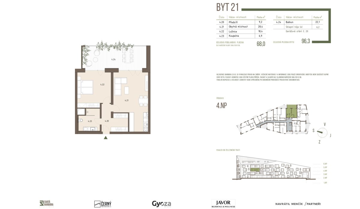 | SB-21 | 2+kk | 3. patro | 63 m2 | 68 m2 | Ne / 22 m2 / Ne | Ne | na vyžádání | Detail |