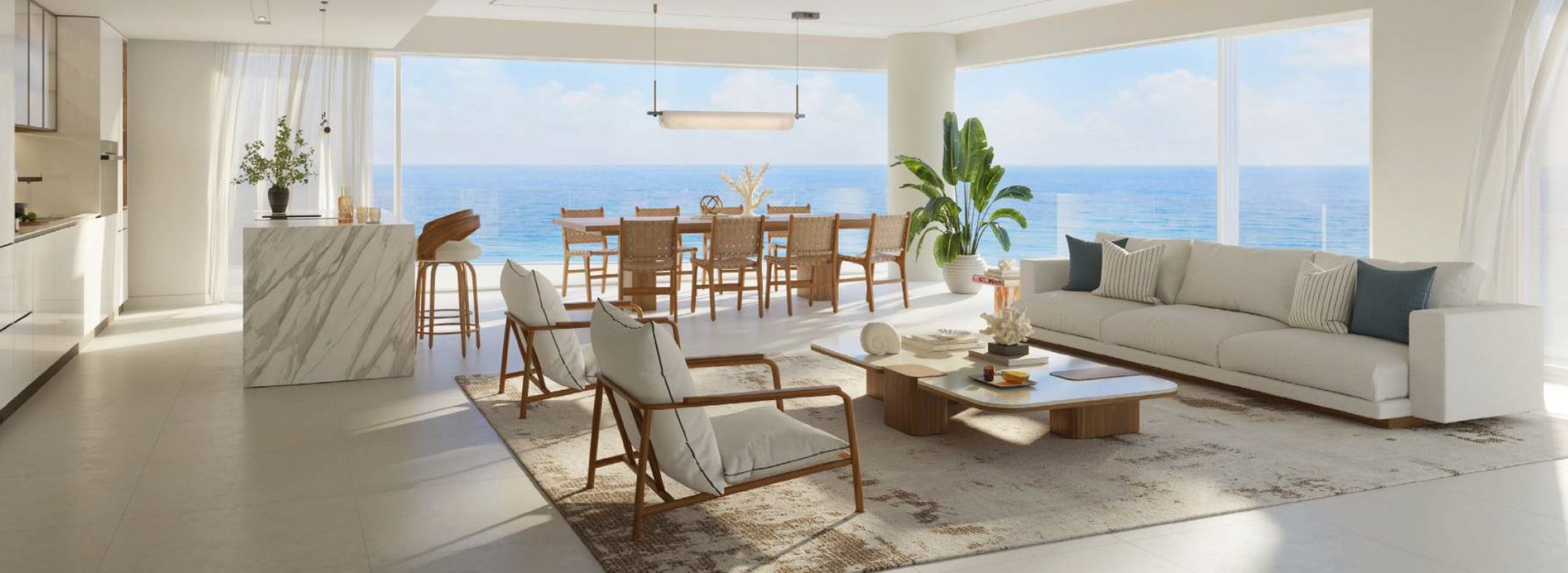 Apartmán je navržen s otevřenou dispozicí, prostorným obývacím prostorem s kuchyňským koutem a velkorysým balkonem, který přirozeně rozšiřuje obytný prostor a umožňuje plně využít jedinečnou pobřežní atmosféru. Velkoformátová okna zajišťují dostatek denního světla a podtrhují vzdušnost interiéru. Architektonické řešení projektu vychází z přírodních linií pobřeží a nese podpis renomovaného studia Koichi Takada.