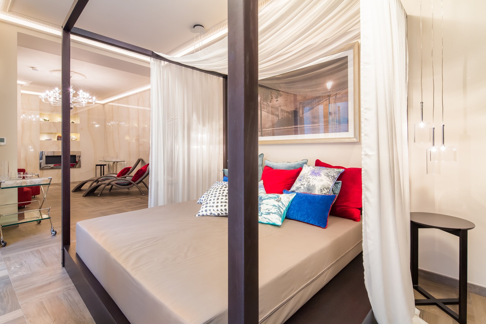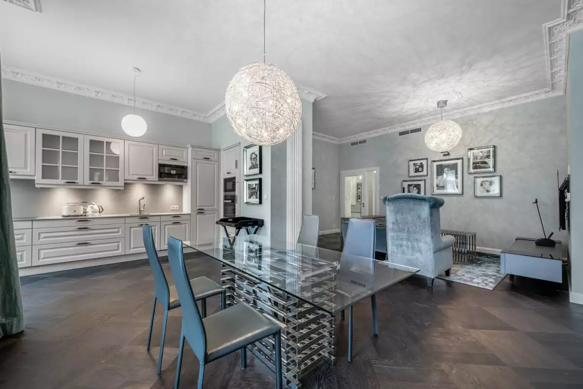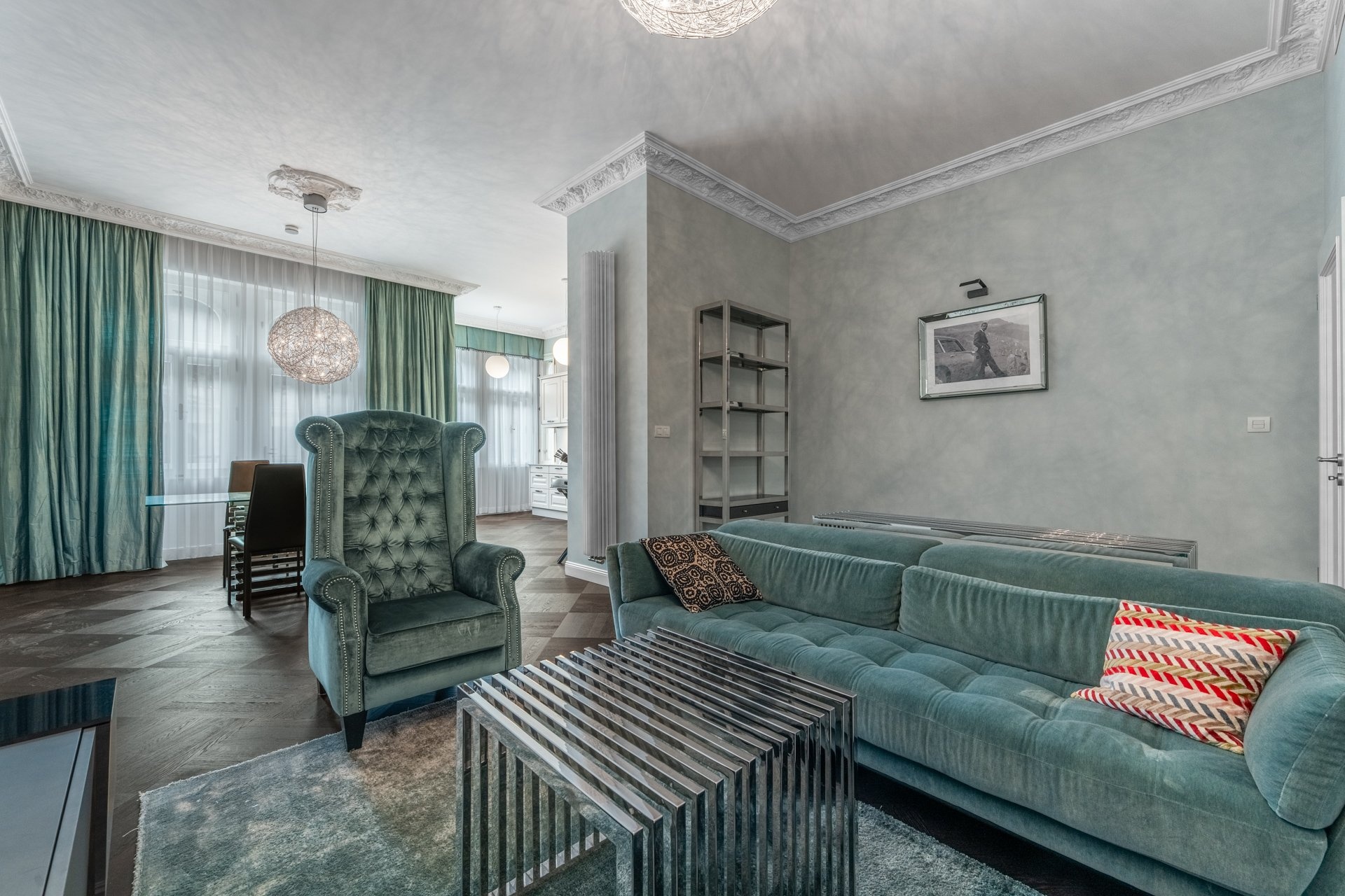 Nabízíme luxusně vybavený designový apartmán „Diamond“ v nově zrekonstruovaném historickém domě Rubin Palace, v srdci Karlových Varů, ve Vřídelní ulici na lázeňské kolonádě. Jedná se o prémiový byt, se saunou, terasou ve stylovém dvoře a balkony orientovanými na kolonádu, situovaný v 1. patře tohoto atraktivního rezidenčního domu s výtahem. Dispozice 3+kk je rozložena na podlahové ploše 238 m2 s balkony o velikosti celkem 7,3 m2 a terasou 30 m2.