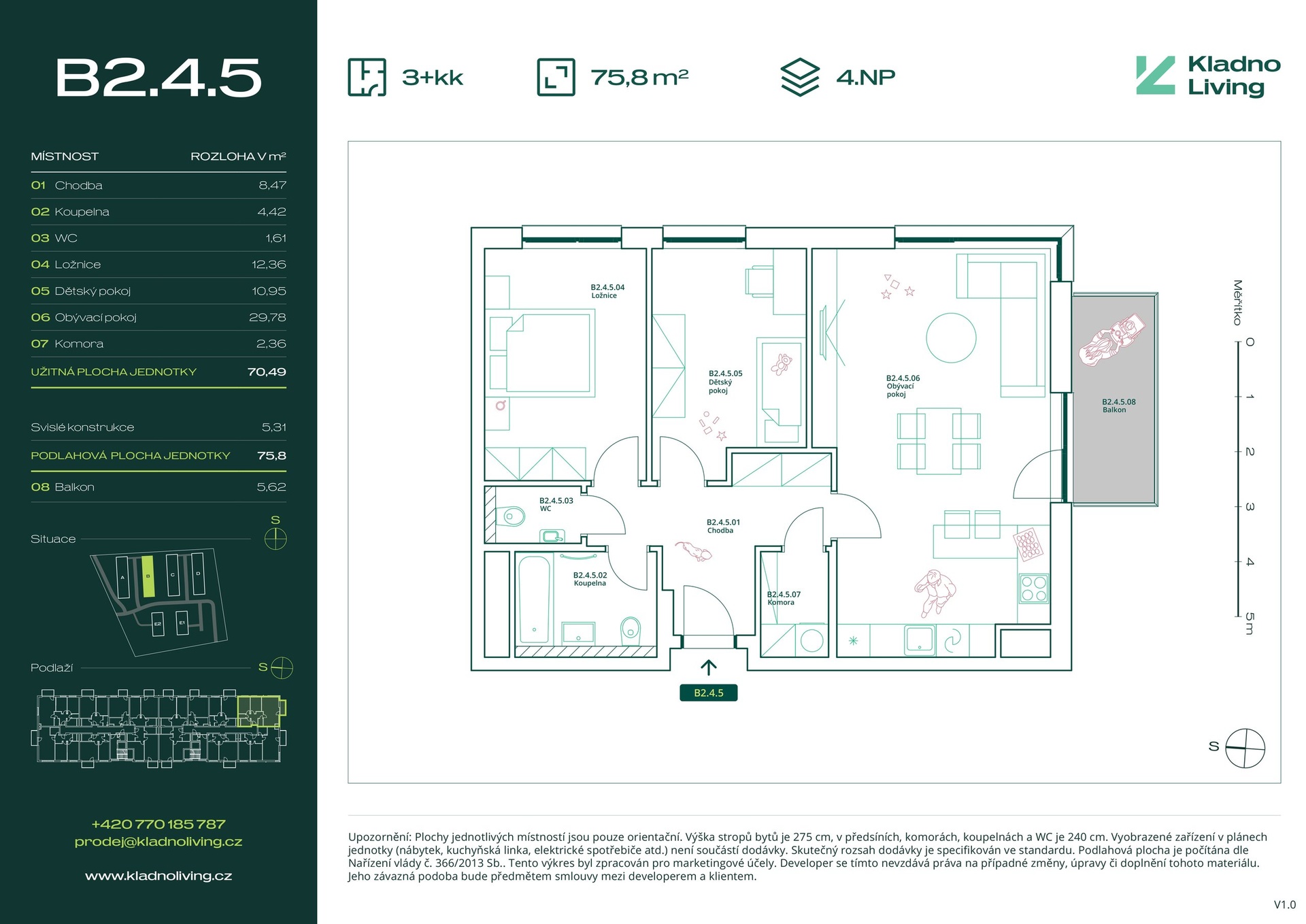 Nabízíme ke koupi moderní byt 3+kk o podlahové ploše 75,8 m² s balkonem 5,6 m² v rezidenčním projektu Kladno Living, který vzniká v jedné z nejatraktivnějších lokalit města Kladno – Kročehlavy. Tento nový developerský projekt představuje jedinečnou příležitost pro ty, kteří hledají nové byty v Kladně nebo investici do nemovitosti s vysokým potenciálem zhodnocení.