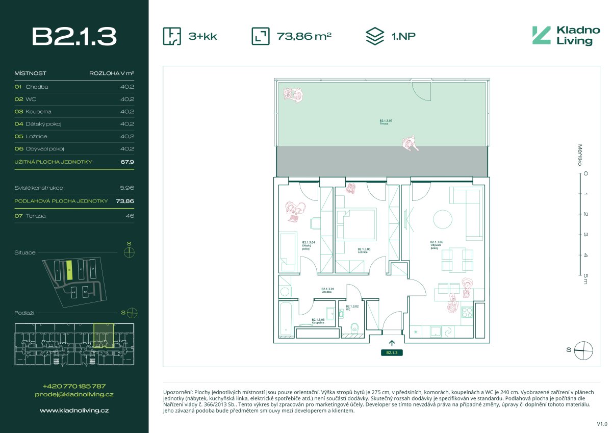 | KL-B133 | 3+kk | 2. patro | 71 m2 | 76 m2 | Ne / 5 m2 / Ne | Ne | 7 750 000 Kč | Detail |