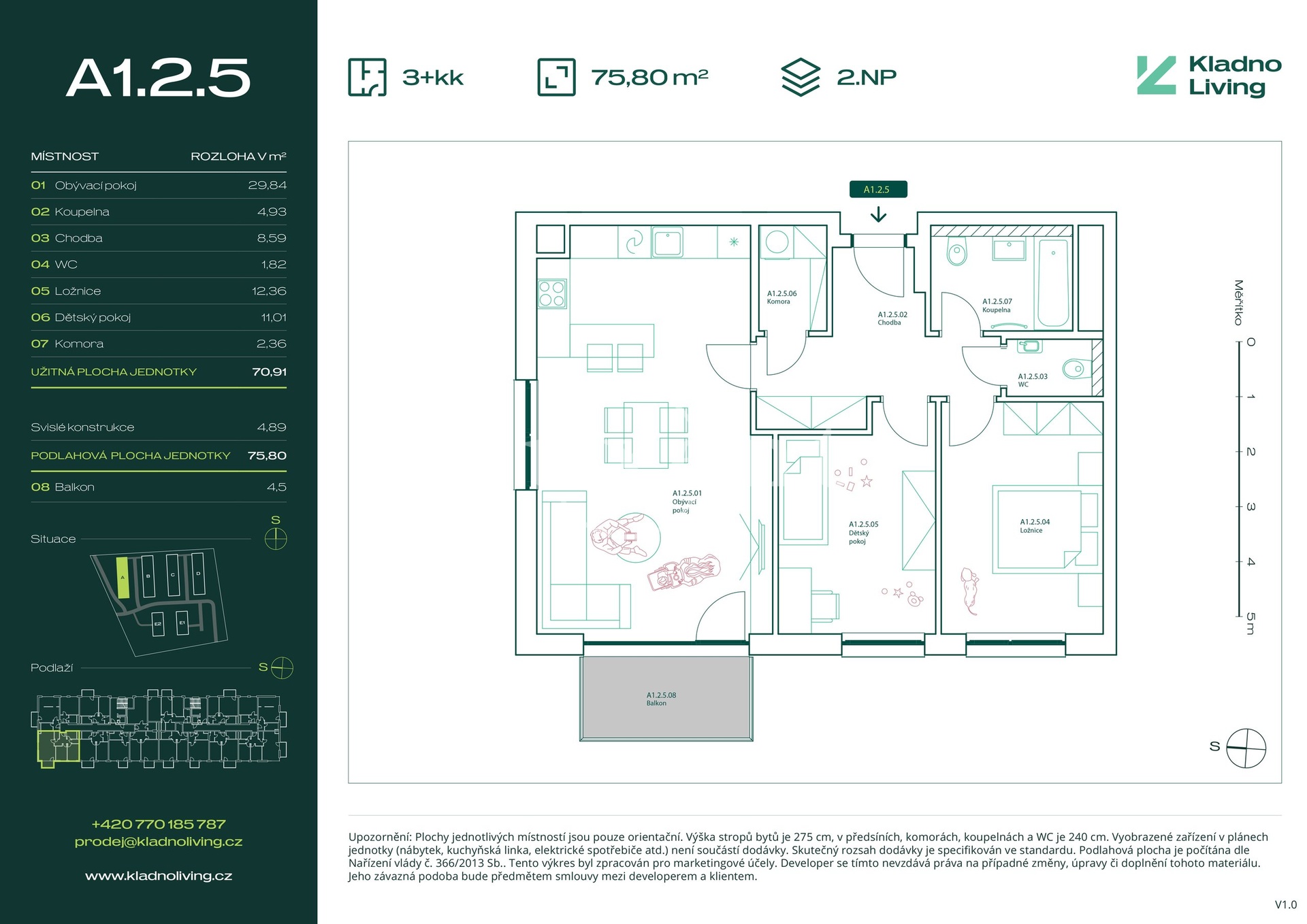 Nabízíme ke koupi moderní byt 3+kk o podlahové ploše 75,8 m² s balkonem 4,5 m² v rezidenčním projektu Kladno Living, který vzniká v jedné z nejatraktivnějších lokalit města Kladno – Kročehlavy. Tento nový developerský projekt představuje jedinečnou příležitost pro ty, kteří hledají nové byty v Kladně nebo investici do nemovitosti s vysokým potenciálem zhodnocení.