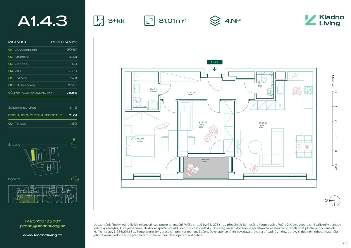 | KL-A143 | 3+kk | 3. patro | 76 m2 | 81 m2 | 5 m2 / Ne / Ne | Ne | 8 780 000 Kč | Detail |