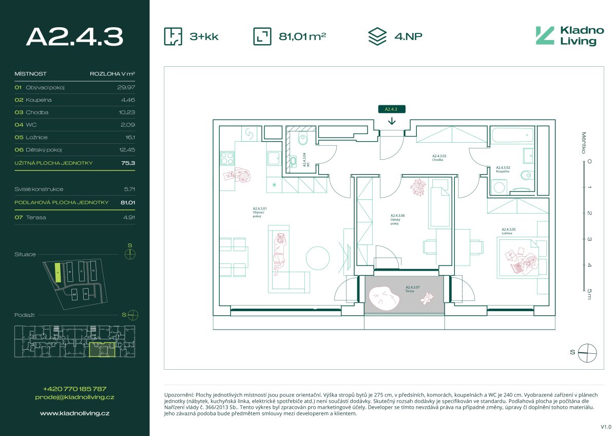 Nabízíme ke koupi moderní byt 3+kk o podlahové ploše 81 m² s terasou 4,9 m² v rezidenčním projektu Kladno Living, který vzniká v jedné z nejatraktivnějších lokalit města Kladno – Kročehlavy. Tento nový developerský projekt představuje jedinečnou příležitost pro ty, kteří hledají nové byty v Kladně nebo investici do nemovitosti s vysokým potenciálem zhodnocení.