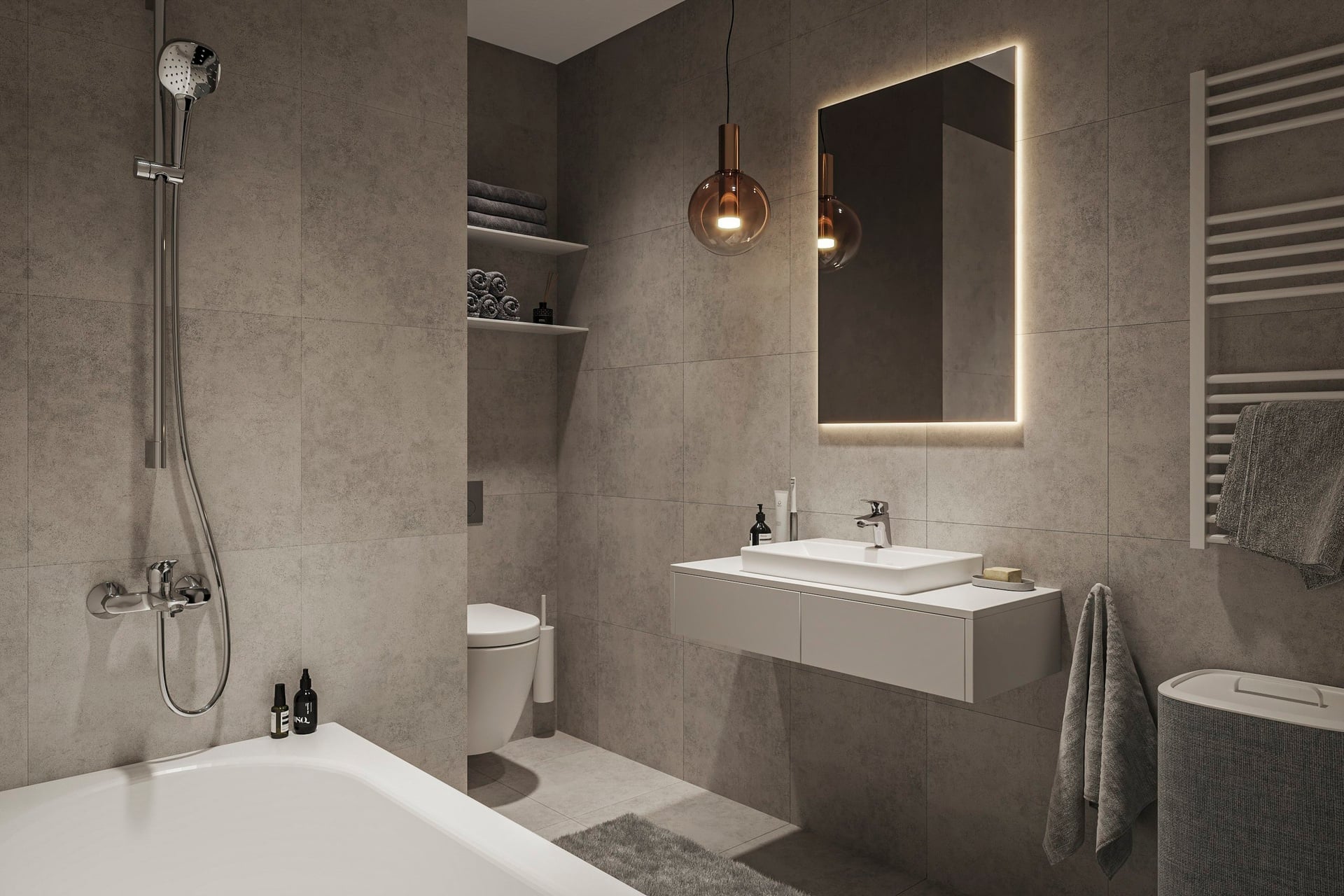 Vinylové minerální podlahy (v nadstandardu dřevěné), designové obklady a keramická dlažba na výběr z několika dekorů. Projekt nabízí nadstandardní a udržitelné materiály, v koupelnách zařizovací předměty od firmy Villeroy Boch, Hansgrohe. Hlavní důraz je kladen na originalitu, funkčnost a estetiku. Celý komplex je přizpůsoben pro bezbariérový přístup včetně výtahů.