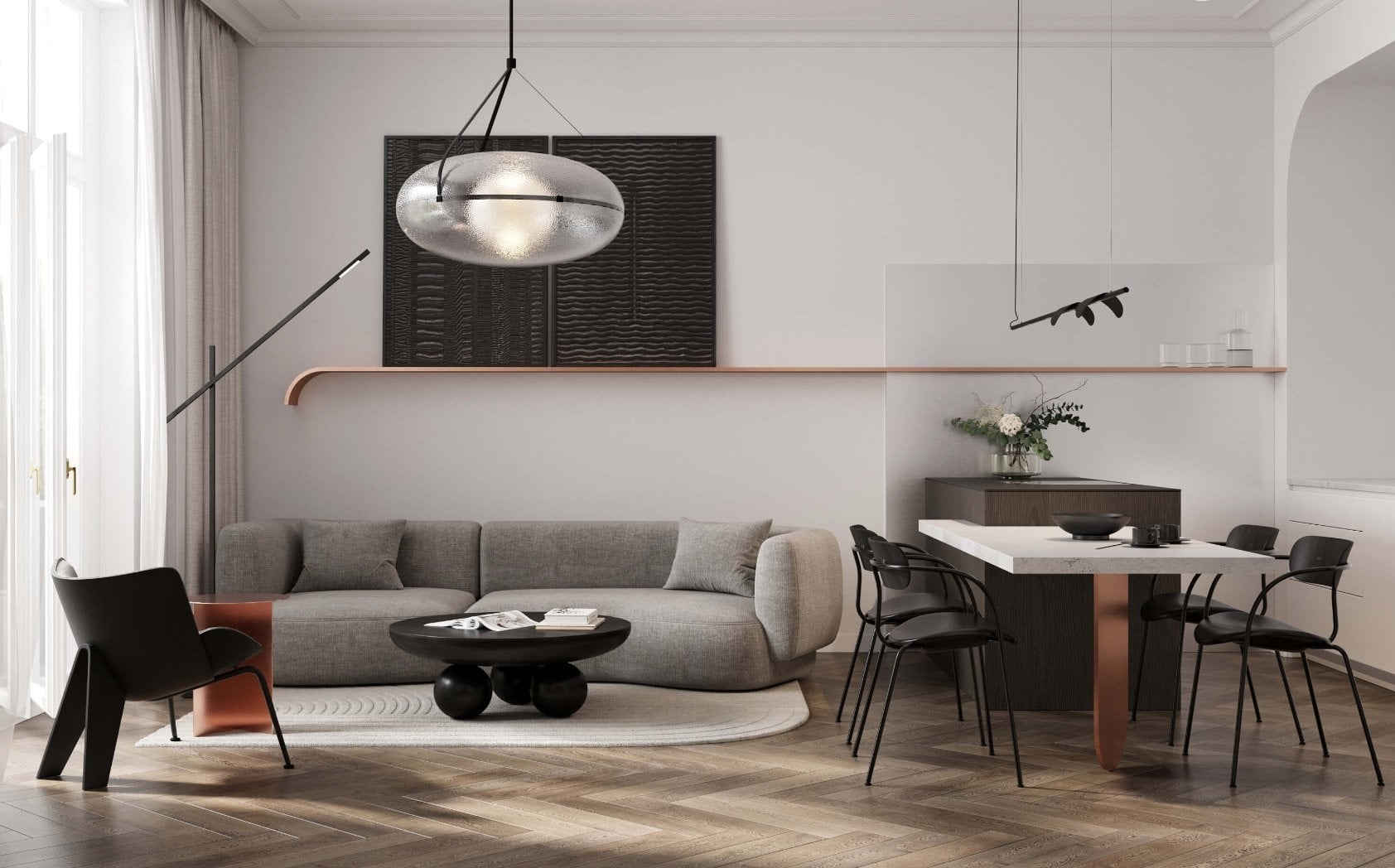 Bytová jednotka o dispozici 3+kk disponuje balkonem a sklepní kóji. Interiér byl navržen předními architekty ze studia SMLXL s mimořádným důrazem na vysokou kvalitu materiálů, technickou preciznost a nadčasovou estetiku. Prostory vynikají promyšleným dispozičním řešením a prémiovými moderními standardy.