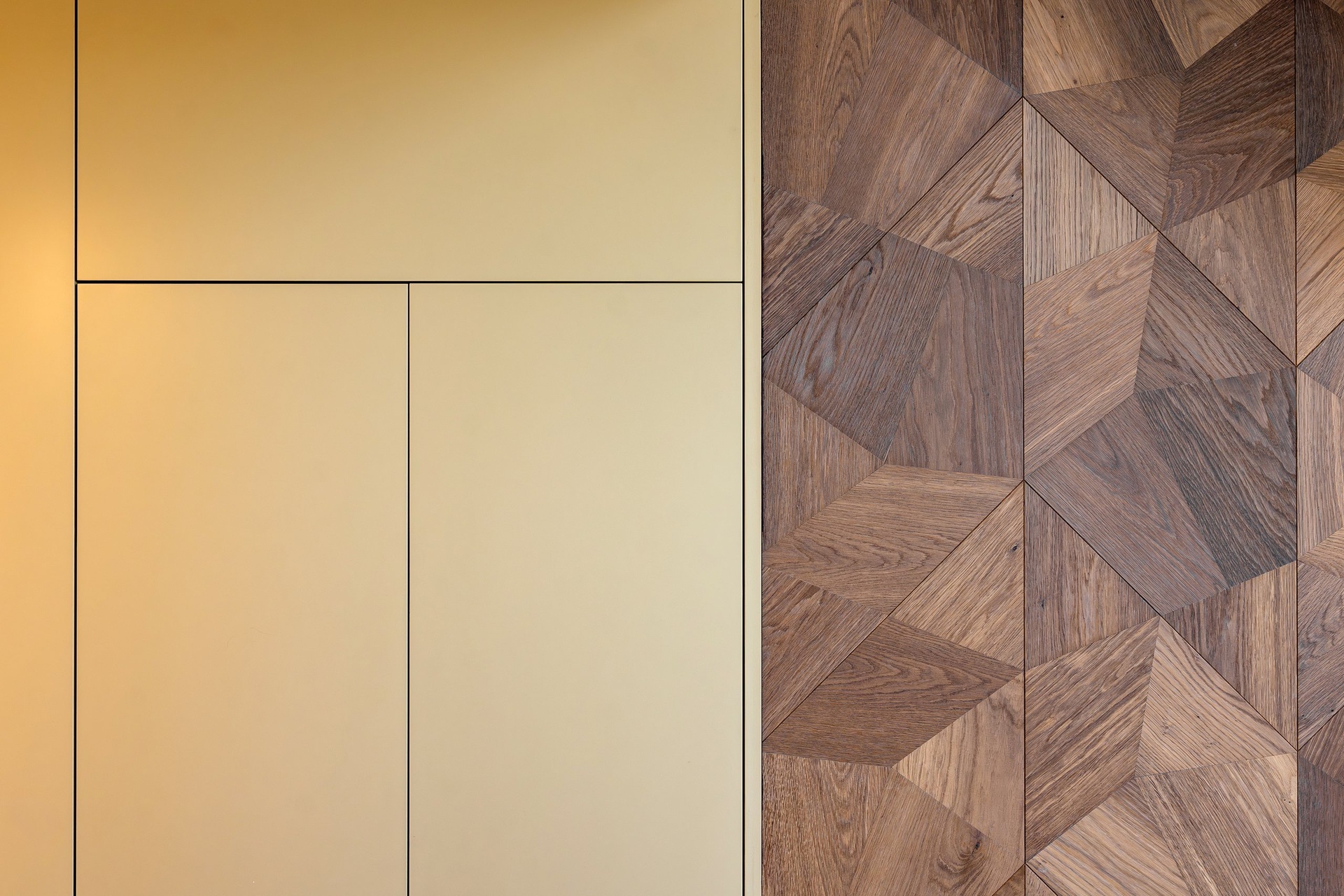 Loft vybízí k vytvoření interiéru s prvky art deco stylu a s ateliérovými okny. Při výstavbě byly použity špičkové materiály: dubová skládaná podlaha (20 mm) od firmy Valen & Masar, umělecké dílo italských mistrů — Foglie d'Oro Fragmenty, dub kouřovaný, mořený, lakovaný.