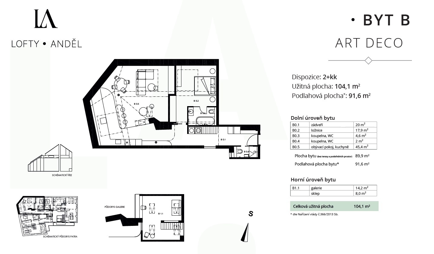 Unikátní designový loft na pražském Andělu je nově vestavěný podle architektonického návrhu v kompletně zrekonstruovaném domě z počátku 19 stol. Je součástí butikového projektu Lofty Anděl. Je zrealizován citlivě k původnímu střešnímu prostoru domu. Jedná se o velkorysý být s galerií (pro pracovnu či druhou ložnici) se dvěma koupelnami a výškou 4,6 m o celkové užitné ploše 114 m² (včetně galerie a sklepa). Celý dům prošel s výstavbou loftů kompletní rekonstrukcí: nová střecha s ateliérovými okny, fasáda, společné části domu, sklepy, nový výtah. Mezi fotografiemi jsou také ilustrativní vizualizace možného interiérového řešení.