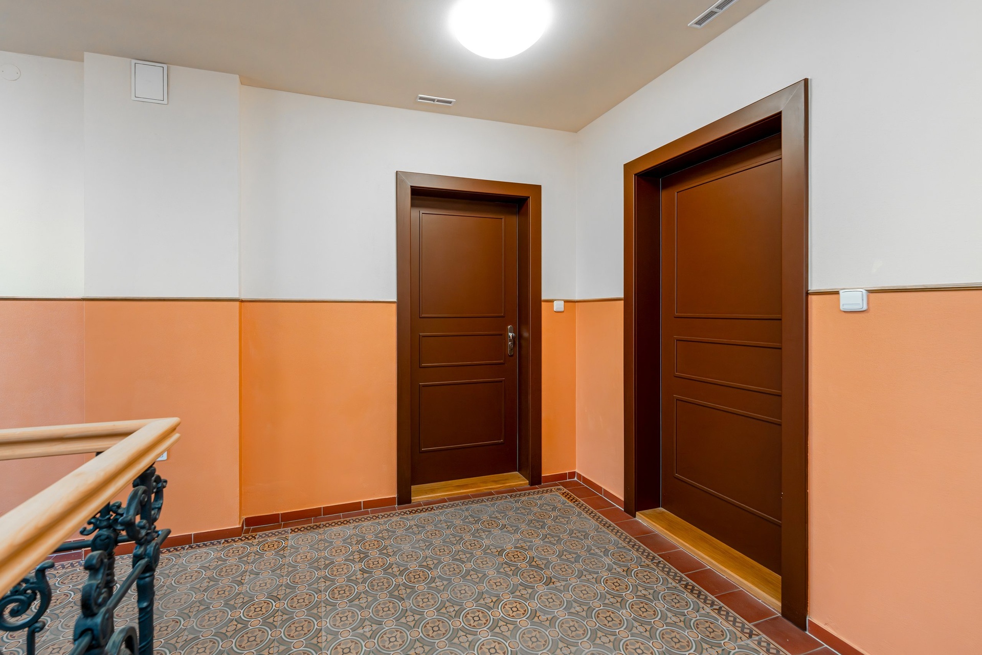 V bytě je rekuperace a klimatizace (Mitsubishi), u ateliérových oken je instalována příprava na venkovní žaluzie. Interiérové dveře Sapeli Unlimited jsou posuvné, bez obložkových pouzder. Vytápění bytu zajišťuje plynový kotel s měděnými rozvody tepla a designovými radiátory.