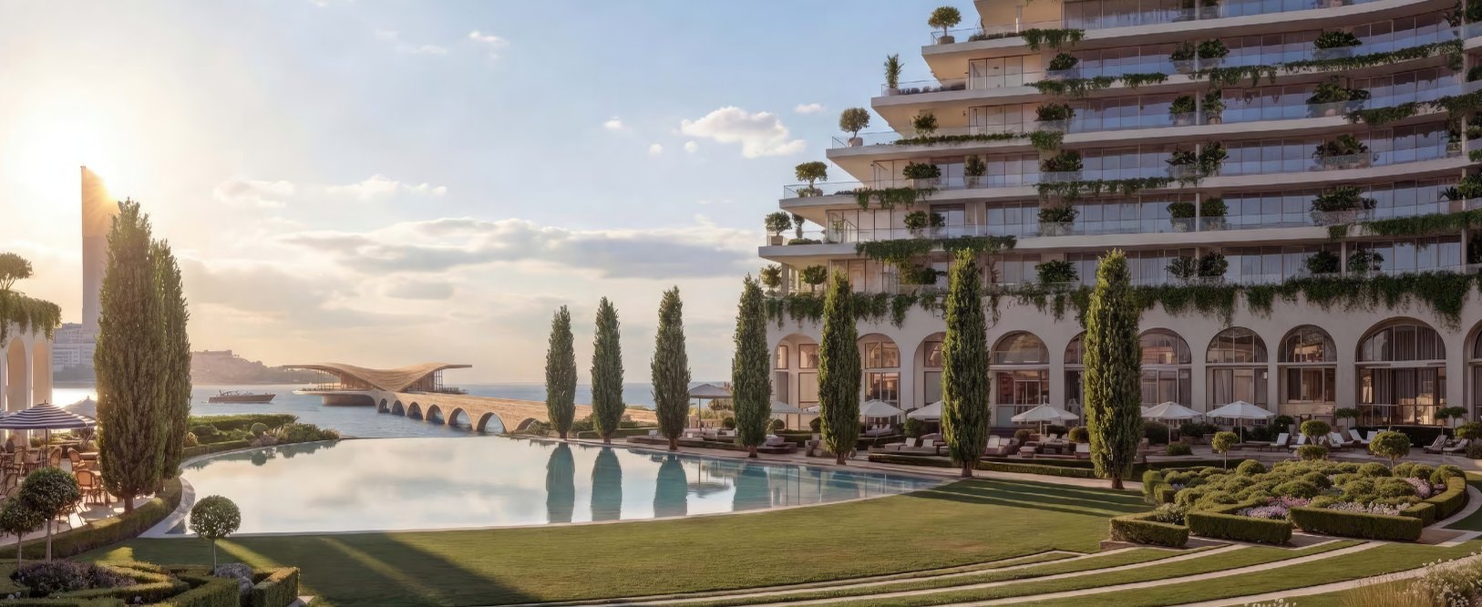 Architektura projektu, navržená renomovaným studiem Pininfarina, čerpá inspiraci z Francouzské riviéry a klade důraz na čisté linie, vyvážené proporce a otevřenost prostoru. Světlé fasády, velká okna a prostorné balkony zajišťují dostatek přirozeného denního světla i nerušené výhledy, zatímco interiéry s vysokými stropy a pečlivě vybranými materiály vytvářejí prostředí klidné, nadčasové a elegantní.