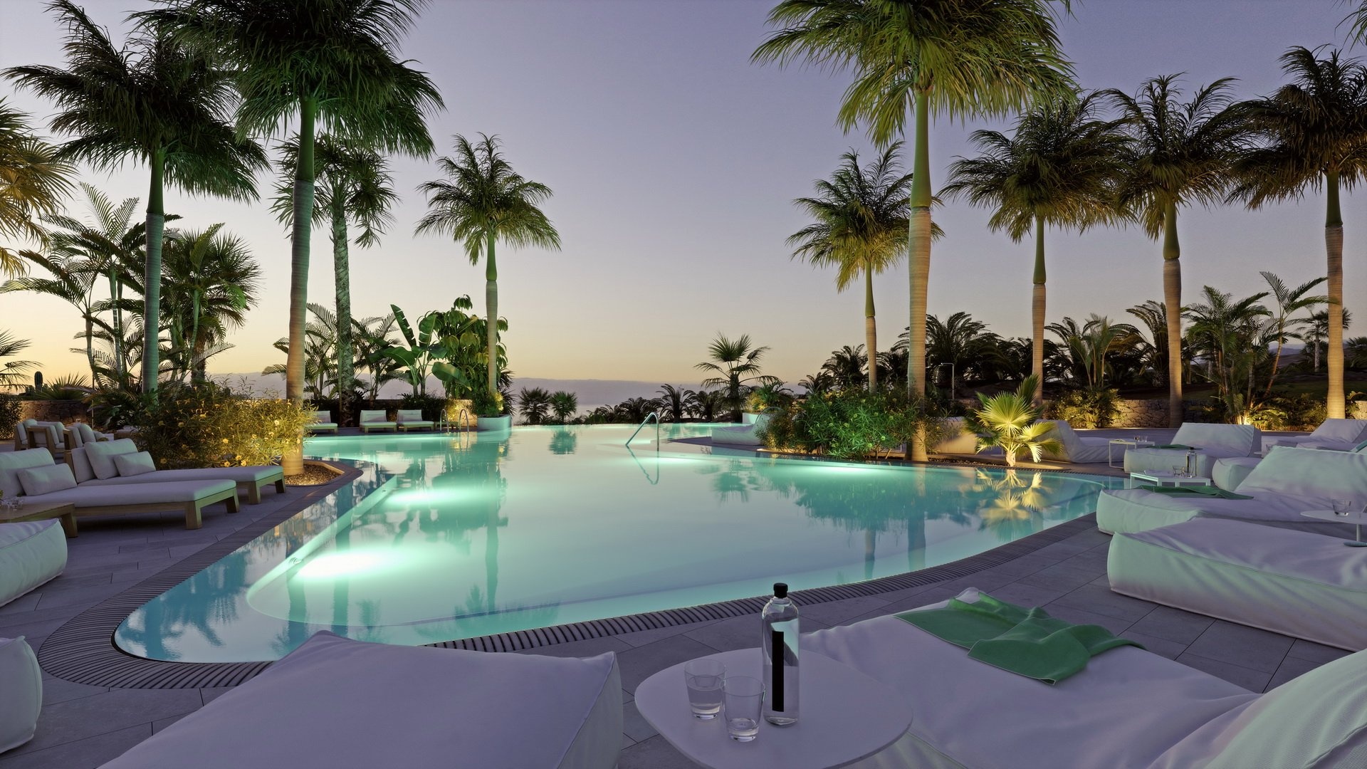 Apartmány jsou postaveny z nejkvalitnějších materiálů a jsou velmi prostorné, plně vybavené spotřebiči a nábytkem od renomovaných značek jako Porcelanosa, Axor-Hansgrohe nebo Duravit a připravené k okamžitému nastěhování. Apartmán nabídne vestavěné skříně, plně vybavenou otevřenou kuchyň a obývací pokoj s jídelnou s velkými okny, které vám umožní vychutnat si okolní přírodu a působivý výhled na moře a ostrov La Gomera.