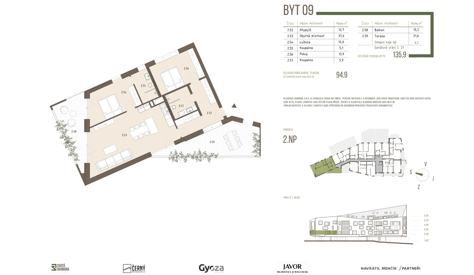 | SB-12 | 2+kk | 2. patro | 63 m2 | 68 m2 | Ne / 21 m2 / Ne | Ne | na vyžádání | Detail |