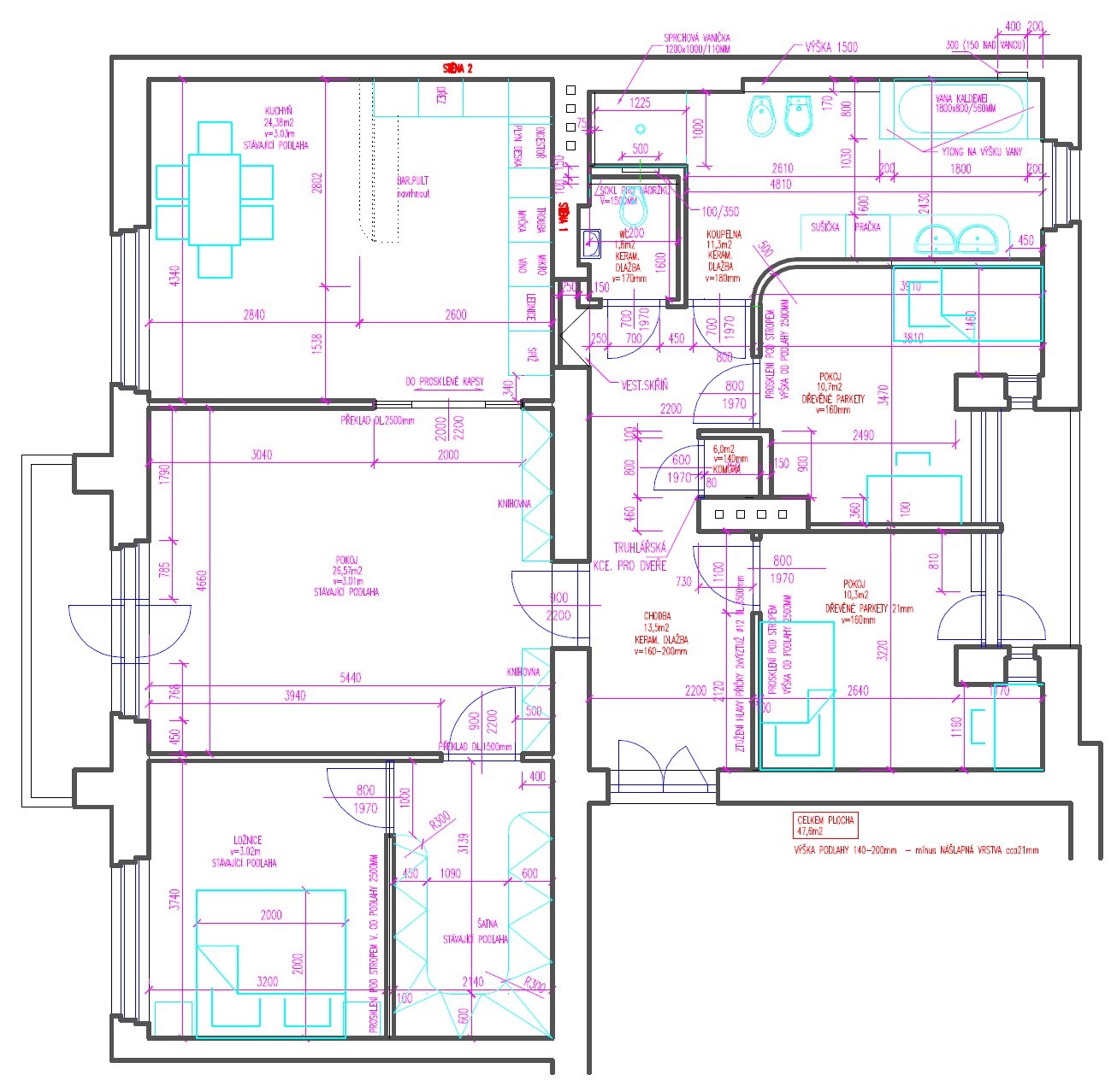 Celková plocha bytu činí 118 m² a je doplněna dvěma lodžiemi o velikosti 3 m² a 4,4 m². Lodžie orientovaná na jih do krásného parku s dětským hřištěm a venkovní posilovnou je vybavena markýzou s možností klidného posezení. Dispozice bytu je prakticky řešena a ideální pro rodinné bydlení viz. půdorys. Byt se skládá ze vstupní haly, samostatné kuchyně s jídelním koutem, prostorného obývacího pokoje, hlavní ložnice se šatnou, dvou dalších pokojů, samostatné toalety a velké koupelny vybavené vanou, sprchovým koutem, dvěma umyvadly, toaletou a bidetem. Součástí koupelny je také pračka se sušičkou. V bytě se dále nachází komora s vlastním plynovým kotlem a zásobníkem na ohřev vody.