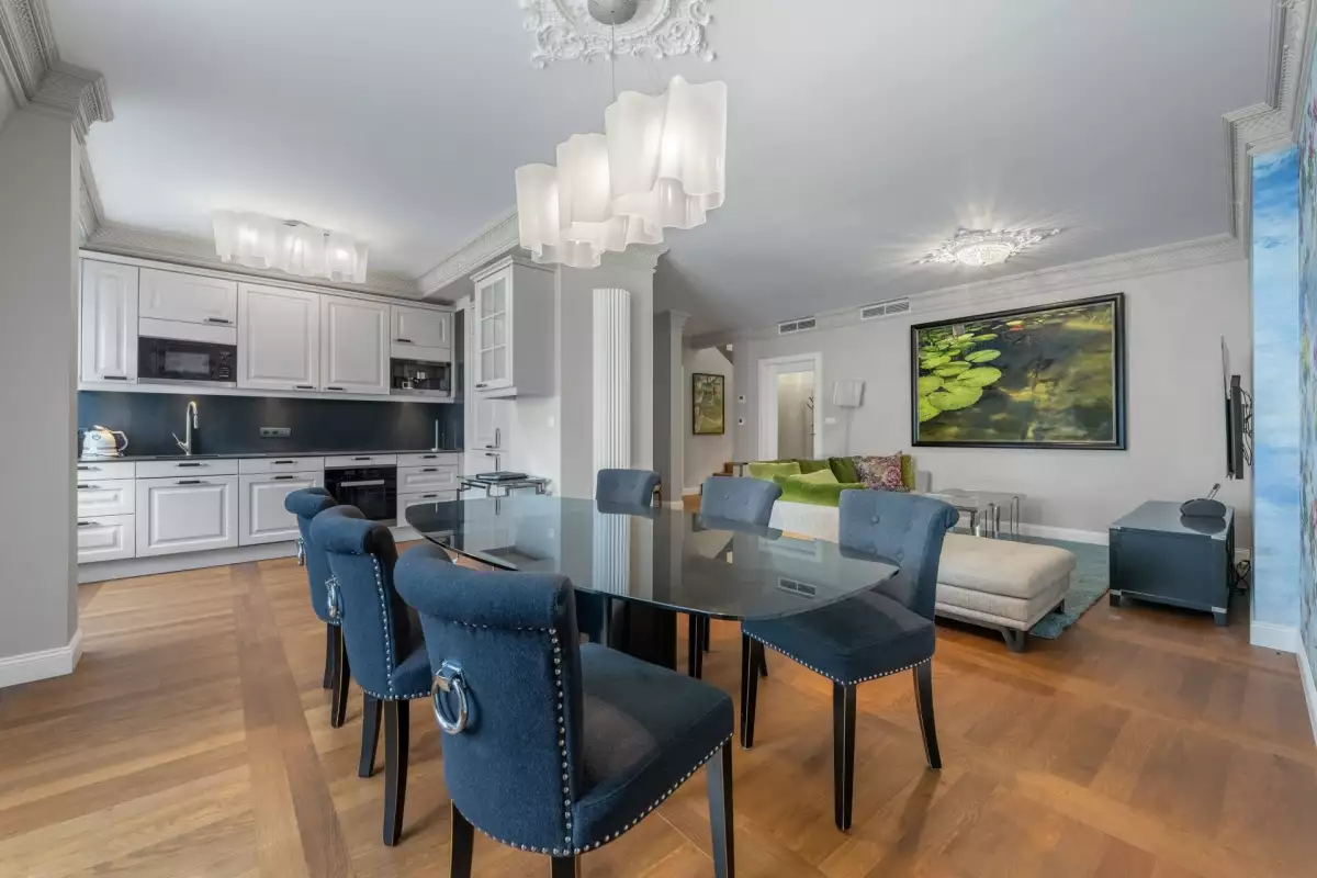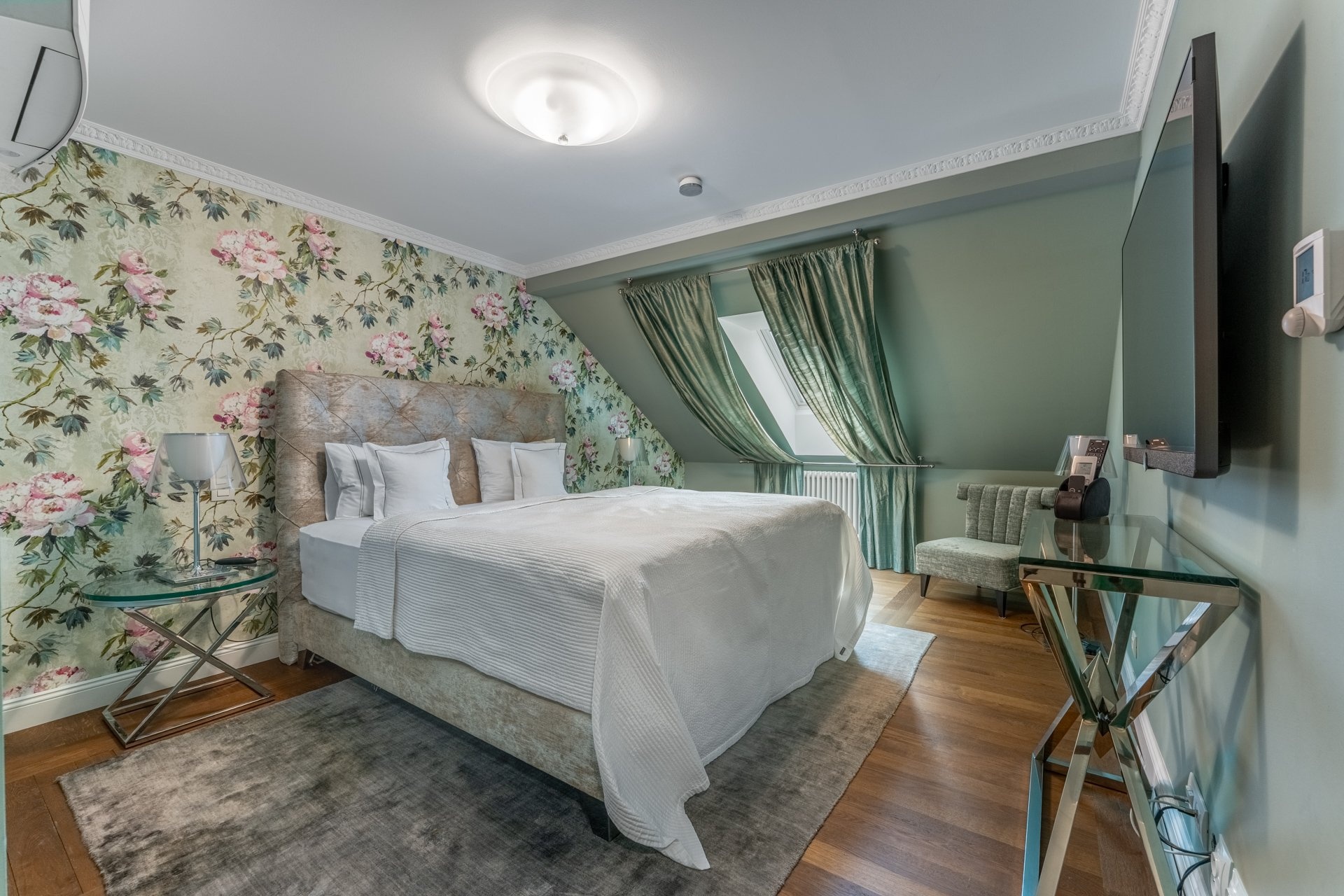 Nabízíme luxusně vybavený designový apartmán „Emerald“ v nově zrekonstruovaném historickém domě Rubin Palace, v srdci Karlových Varů, ve Vřídelní ulici na lázeňské kolonádě. Jedná se o mezonetový byt ve 4. a 5. patře tohoto atraktivního rezidenčního domu s výtahem. Dispozice 4+kk balkonem vysoko nad kolonádou je rozložena na podlahové ploše 161,7 m2 a balkonu o velikosti celkem 11,5 m2.