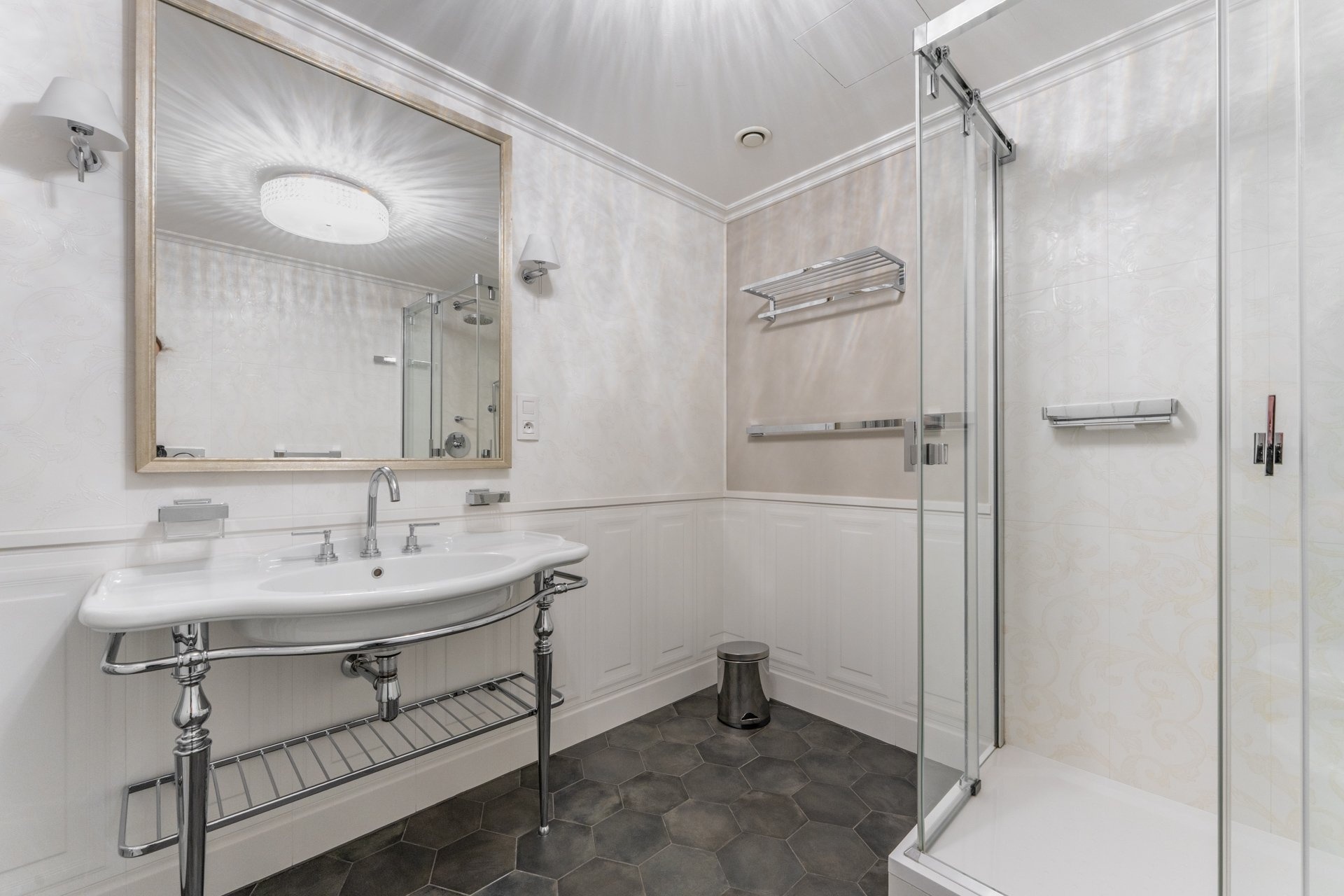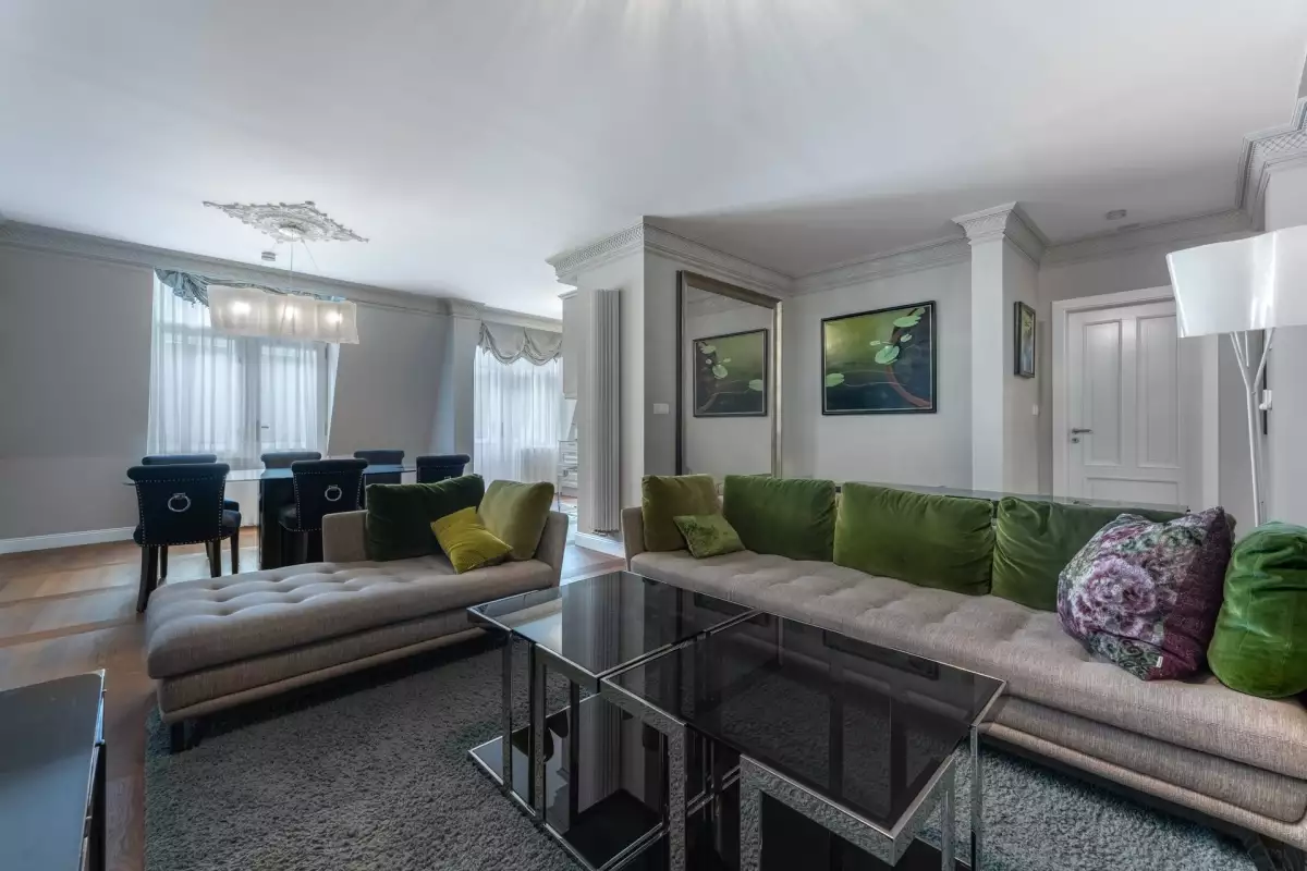 Nabízíme luxusně vybavený designový apartmán „Emerald“ v nově zrekonstruovaném historickém domě Rubin Palace, v srdci Karlových Varů, ve Vřídelní ulici na lázeňské kolonádě. Jedná se o mezonetový byt ve 4. a 5. patře tohoto atraktivního rezidenčního domu s výtahem. Dispozice 4+kk balkonem vysoko nad kolonádou je rozložena na podlahové ploše 161,7 m2 a balkonu o velikosti celkem 11,5 m2.