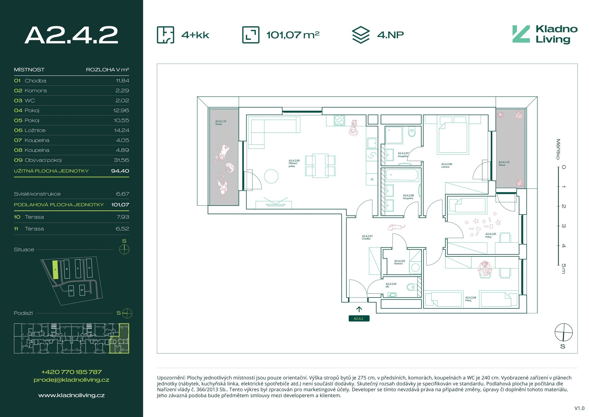 Nabízíme ke koupi moderní byt 4+kk o podlahové ploše 101 m² se dvěma terasami 7,9 a 6,5 m² v rezidenčním projektu Kladno Living, který vzniká v jedné z nejatraktivnějších lokalit města Kladno – Kročehlavy. Tento nový developerský projekt představuje jedinečnou příležitost pro ty, kteří hledají nové byty v Kladně nebo investici do nemovitosti s vysokým potenciálem zhodnocení.