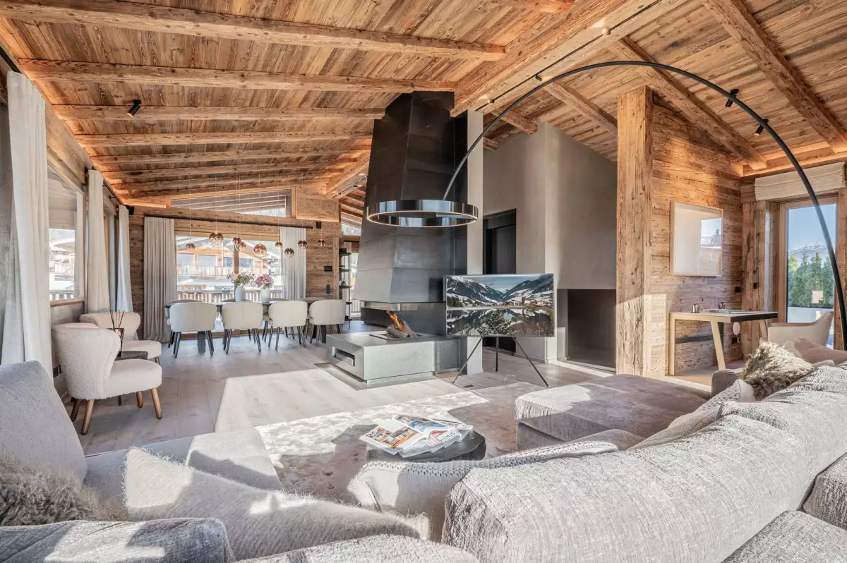 Interiér chaletu je vybaven vysoce kvalitními materiály, včetně přírodního kamene, starého dřeva, dubových palubek a špachtlovaných povrchů. Nábytek je vyráběn na míru renomovanou rakouskou firmou Aufschnaiter. Tento moderní a zároveň tradiční styl podtrhuje otevřený krb, krov a vazník ze starého dřeva a sofistikované detaily, jako ambientní osvětlení a integrovaný zvukový systém v každé z čtyř koupelen.
