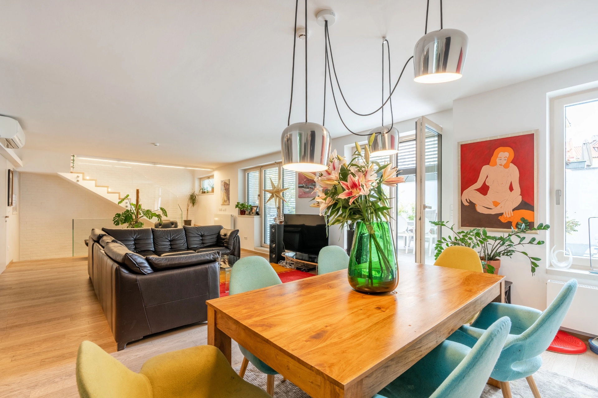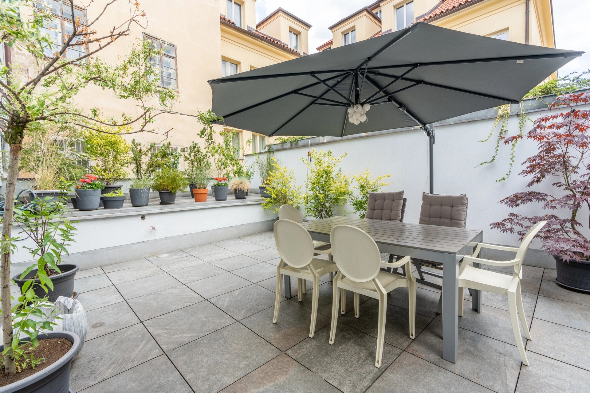 Na jednom z nejkrásnějších míst v Praze, pouze pár kroků stranou od jedné z hlavních a nejstarších malostranských komunikací, nabízíme k prodeji naprosto výjimečný a velkoryse řešený byt. Nemovitost o dispozici 7+kk se rozprostírá na čtyřech podlažích s terasami. Podlaží propojuje vlastní výtah. Byt se nachází se na vnitřním nádvoří obklopeném souborem domů.