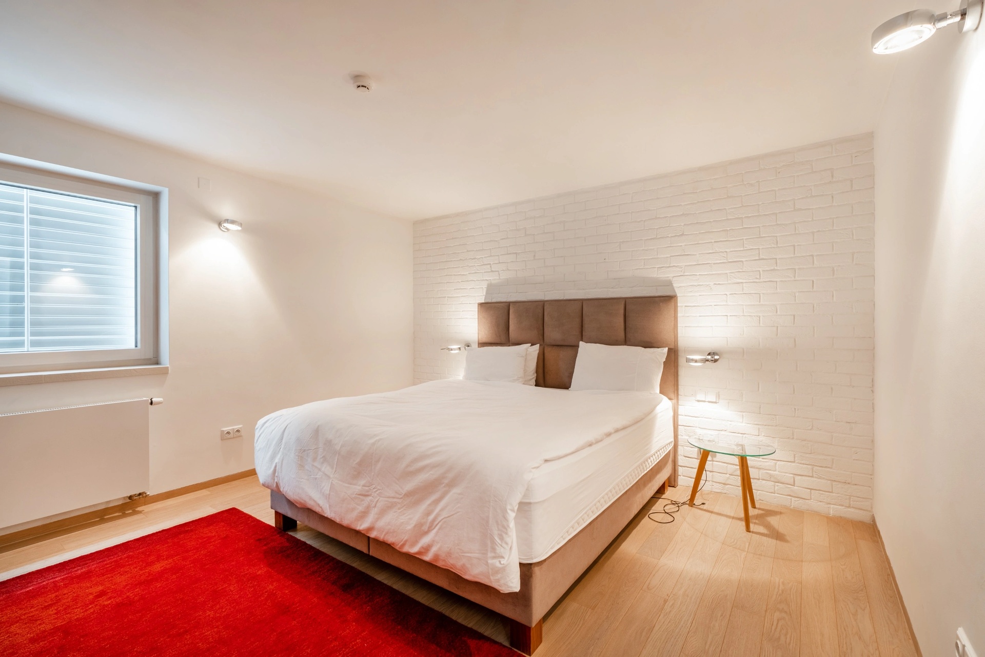 Byt byl před několika lety kompletně nově postaven a zkolaudován. K zařízení a vybavení byly použity materiály a zařizovací předměty v té nejvyšší kvalitě. Vstupy do obytných jednotek, jsou zajištěny dvojími vysoce bezpečnostními dveřmi, byla instalována dřevohliníková okna s izolačními trojskly, elektrické vnější žaluzie i vnitřní odstínění. Střešní krytinu tvoří navětralá měď švédské výroby. Podlahy v obytných místnostech jsou zhotoveny z běleného dubu, v koupelnách (vybavených koupelnovou sanitou Laufen třídy Palomba) a ostatních místnostech jsou keramické povrchy. Na všech podlažích je instalováno podlahové topení (zajišťuje plynový kotel Buderus), také alarm a kamerový systém. Sauna v koupelně ve třetím patře je značky Klafs, výtah spojující všechna podlaží od firmy Gara Venta.