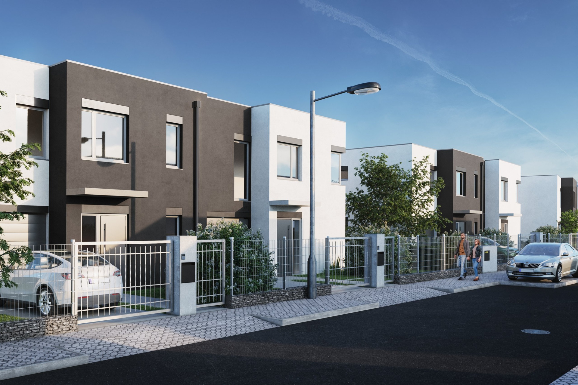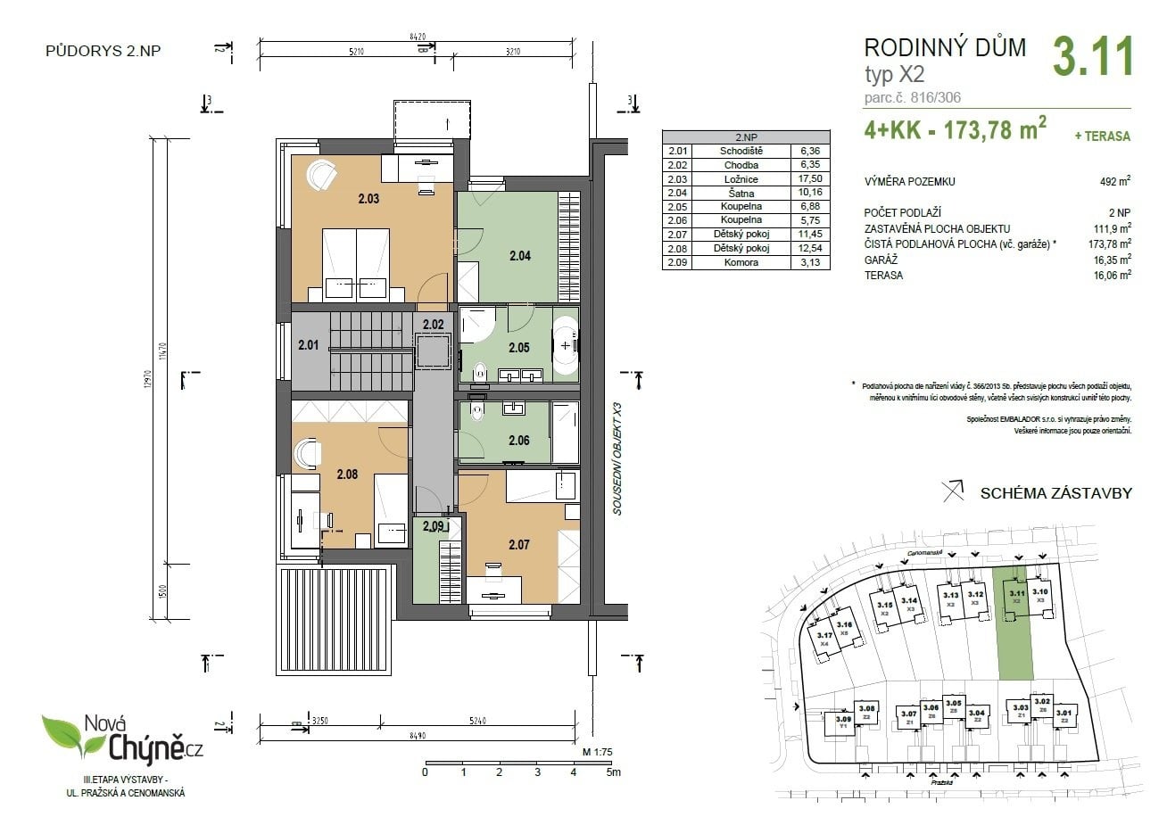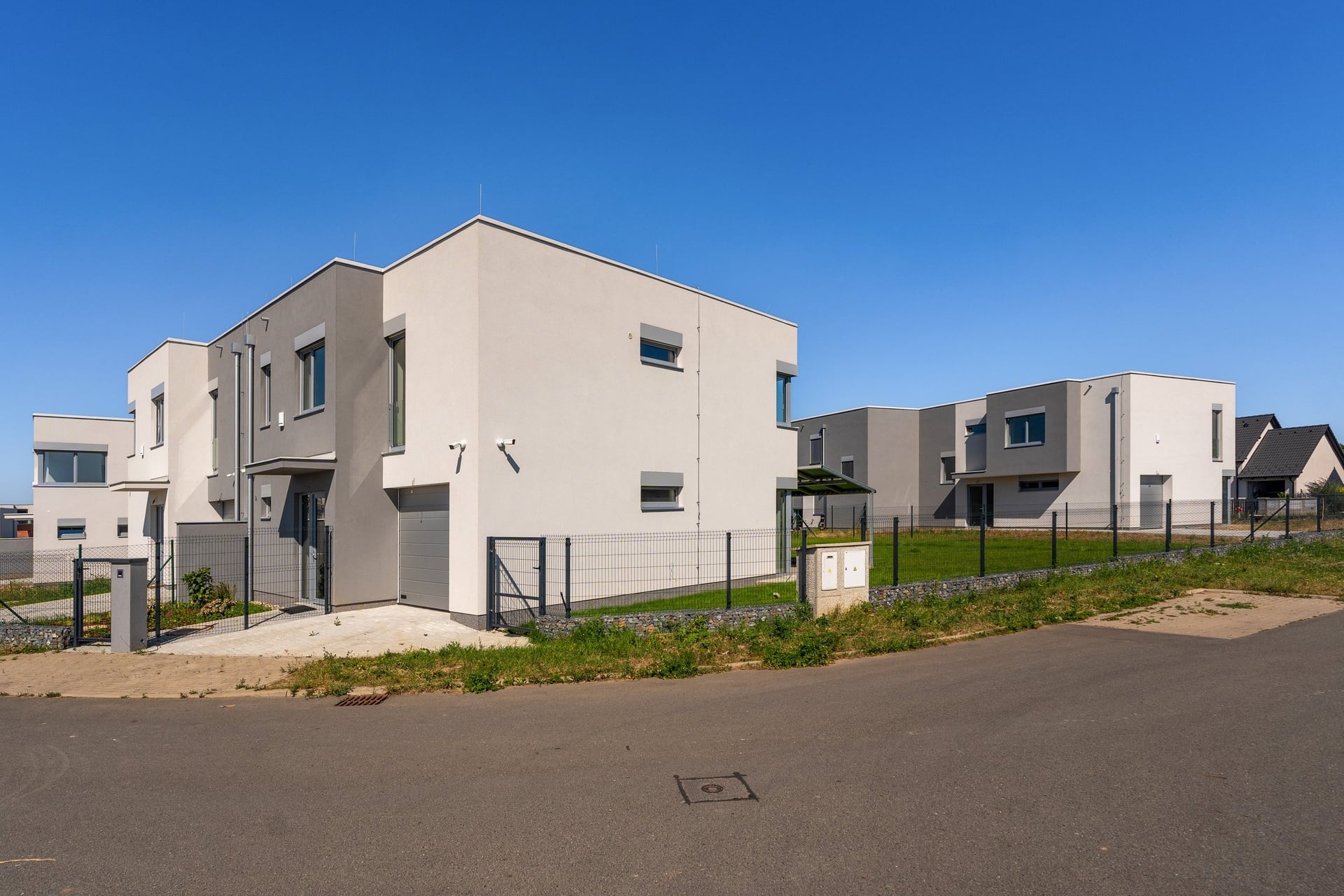 Nabízíme energeticky úsporný rodinný dům se zahradou v projektu Nová Chýně, na západním okraji Prahy – ve městě Chýně – s dojezdem 14 km do centra Prahy. Projekt uspokojí lokalitou, kvalitou zděných domů s praktickými dispozicemi a zahradami i technologickou promyšleností. Nabízený rodinný dům je zděný, má dispozici 4+kk+G, podlahovou plochu 173,8 m2, terasu 16 m2. Stojí na pozemku o rozloze 492 m2 se zahradou 380 m2. Součástí domu je garáž pro jeden vůz a jedno další park. stání je na vlastním pozemku.