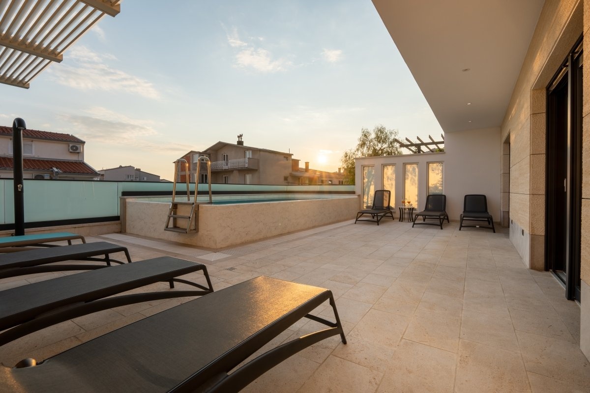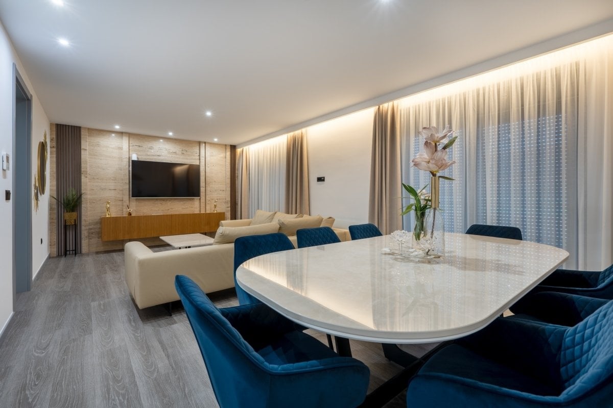 Na prodej je exkluzivní rekreační vila nacházející se v oblasti Makarska, v blízkosti měst Omiš a Split na chorvatském pobřeží. Vila je situována na jižní straně, odkud nabízí úchvatný panoramatický výhled na křišťálově čisté moře. Kombinuje moderní interiér, elegantní design a nejvyšší úroveň komfortu, čímž vytváří ideální prostředí pro luxusní středomořskou dovolenou.