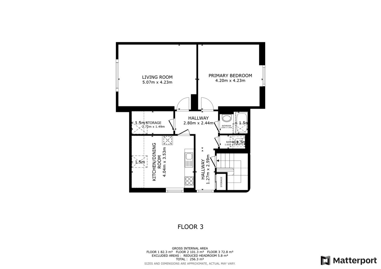 3. nadzemní podlaží disponuje obývacím pokojem s balkonem (21,5 m²) s nádherným výhledem, ložnicí (18 m²), kuchyní (14 m²), komorou (4 m²), předsíní, koupelnou a samostatnou toaletou.
