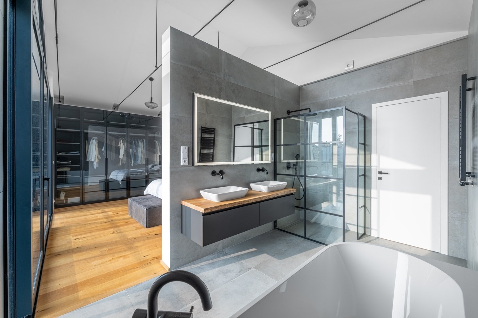 2.NP nabízí velkorysou ložnici (20 m²) s prosklením až do štítu domu a HS portálem, který umožňuje vstup na lodžii ( 11,6 m2) s krásným výhled. Součástí ložnice je koupelna ( 10,6 m²) s vanou, sprchovým koutem, dvěma umyvadly a samostatnou toaletou. Na patře jsou další tři ložnice, ke kterým naleží další koupelna s vanou, sprchovým koutem, dvěma umyvadly a toaletou.