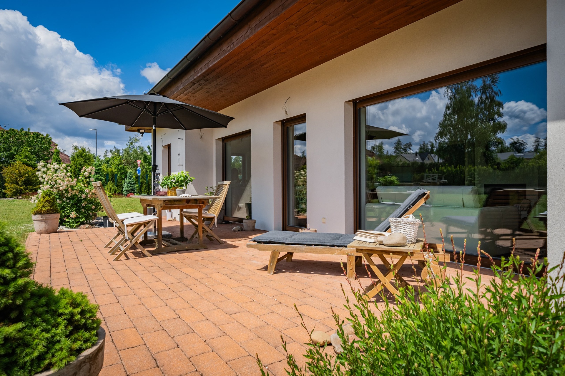 Exkluzivně nabízíme krásný, nízkoenergetický dům o zastavěné ploše 289 m², s dispozicí 5+kk, kolaudovaný v roce 2021. Nemovitost je ideální kombinací moderní architektury a klidného rodinného zázemí s rozlehlou zahradou. Splňuje moderní rodinné bydlení s dostatkem denního světla, nízké provozní náklady a je v souladu s využitím nejnovějších technologií, nadstandardních zařizovacích předmětů a přírodních materiálů.
