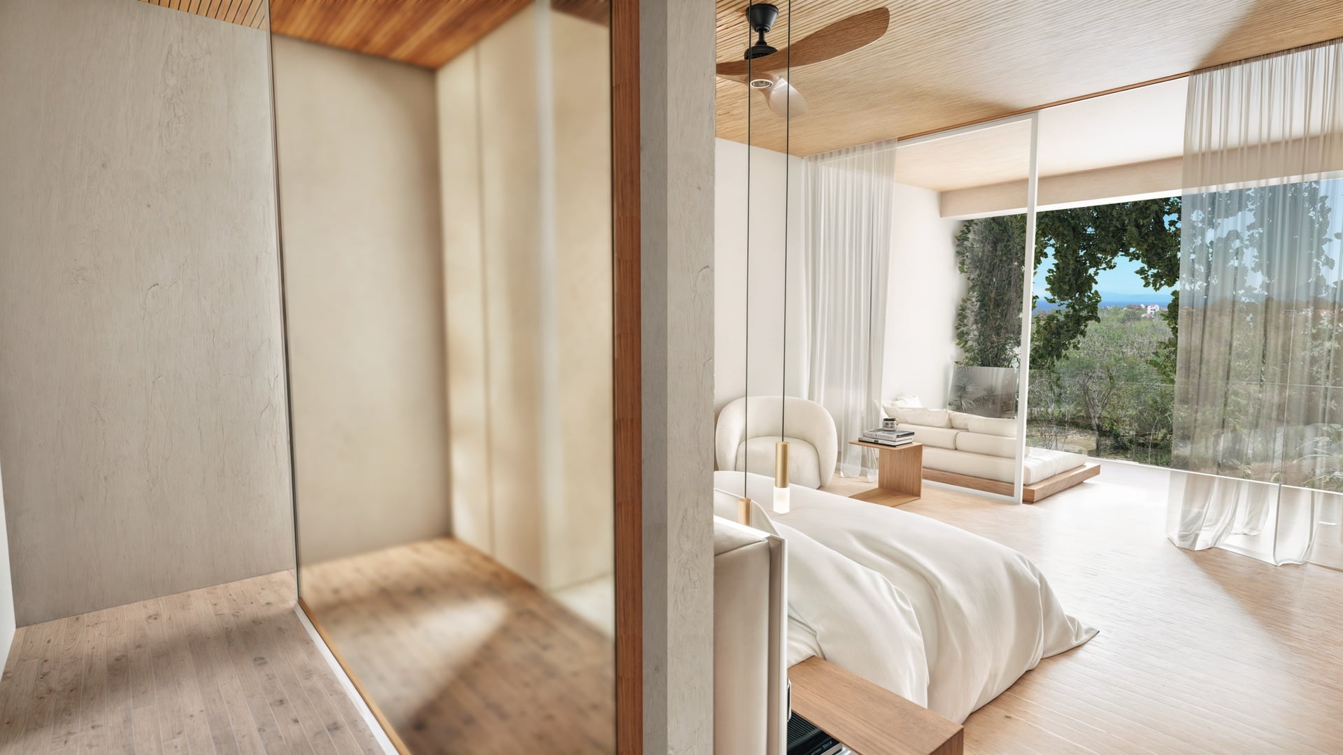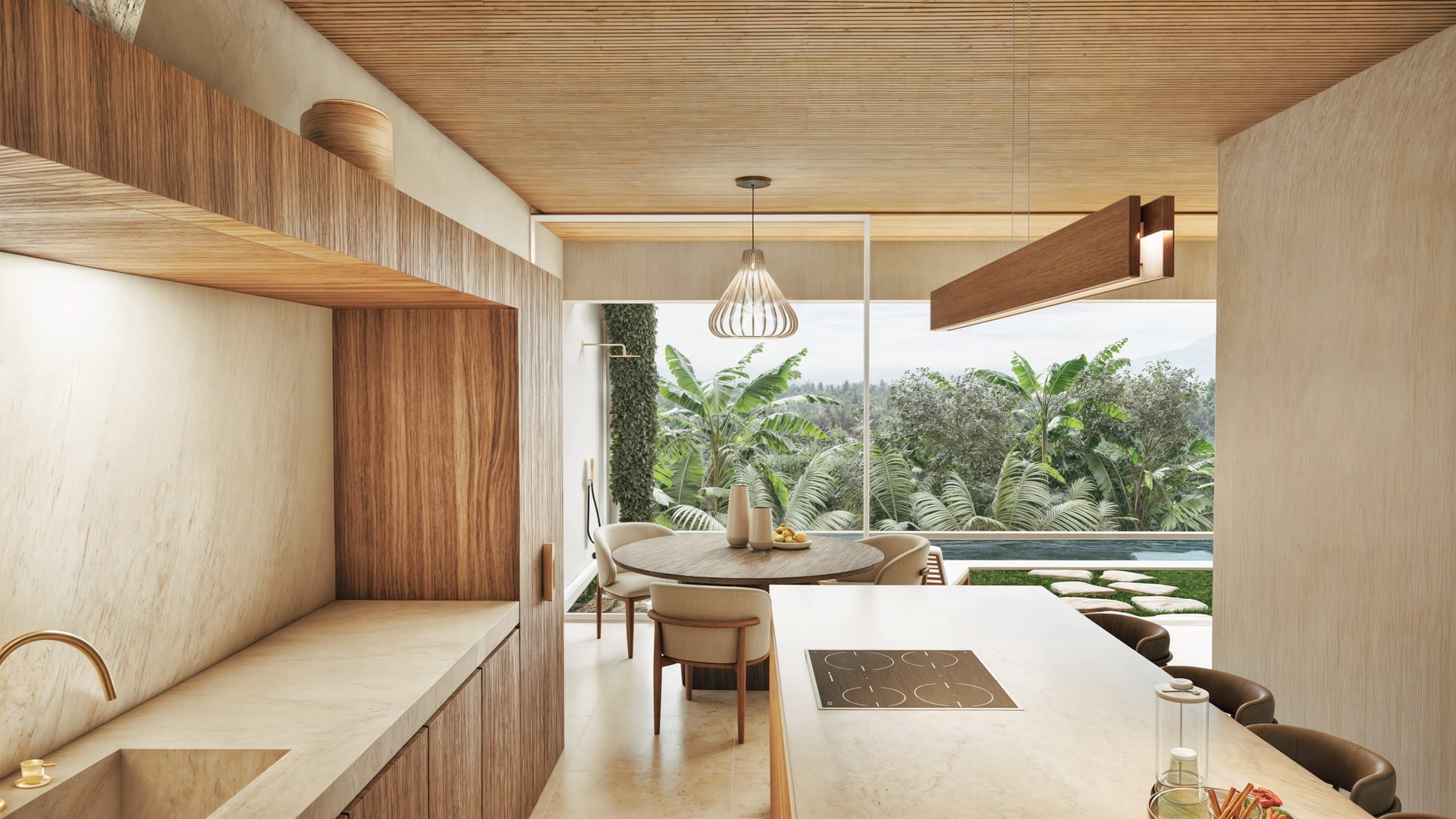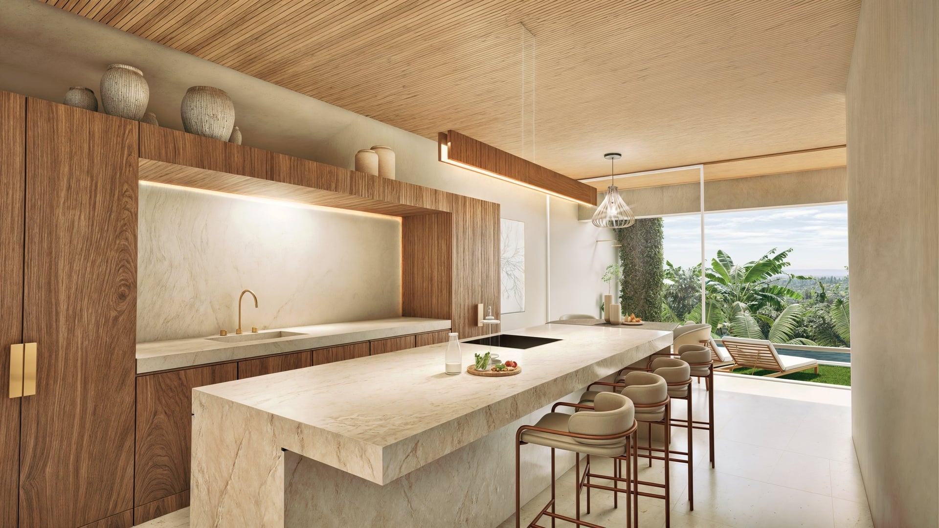 Vily představují dokonalé spojení luxusu, moderního designu a úchvatných výhledů do tropické krajiny. Každá vila nabízí vzdušný interiér s velkými prosklenými plochami, elegantní zapuštěný obývací prostor a dvě ložnice s privátními koupelnami. Je zde špičkově vybavená kuchyně s prémiovými povrchovými úpravami. Venkovní prostor zahrnuje soukromý bazén, exotickou zahradu a terasu s jacuzzi, odkud si můžete vychutnat dechberoucí výhledy na oceán i okolní krajinu. Chytrá řešení, jako dostatek vestavěného úložného prostoru, multifunkční místnost a prostorná garáž pro auto a dvě kola, zajišťují maximální pohodlí a praktičnost.