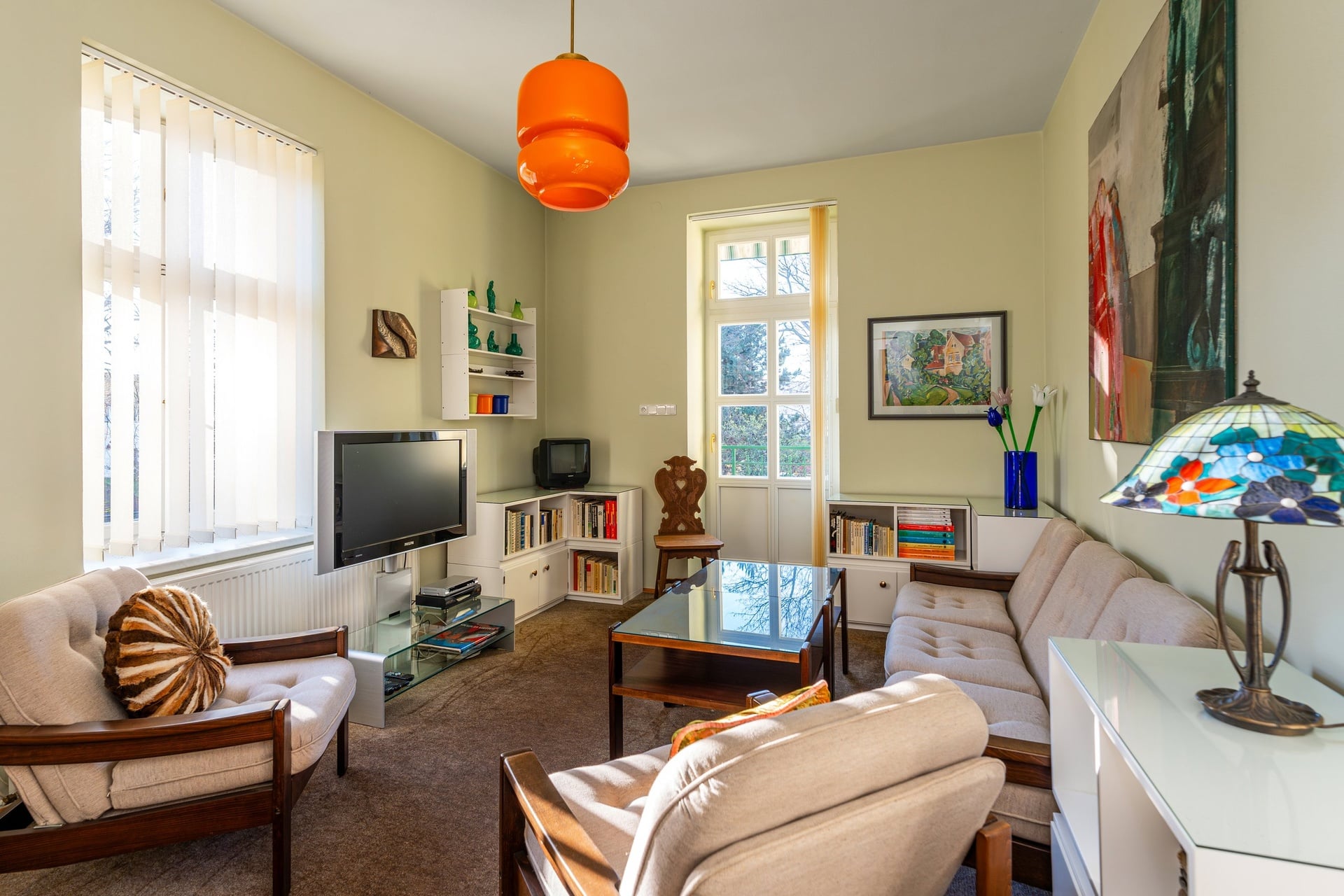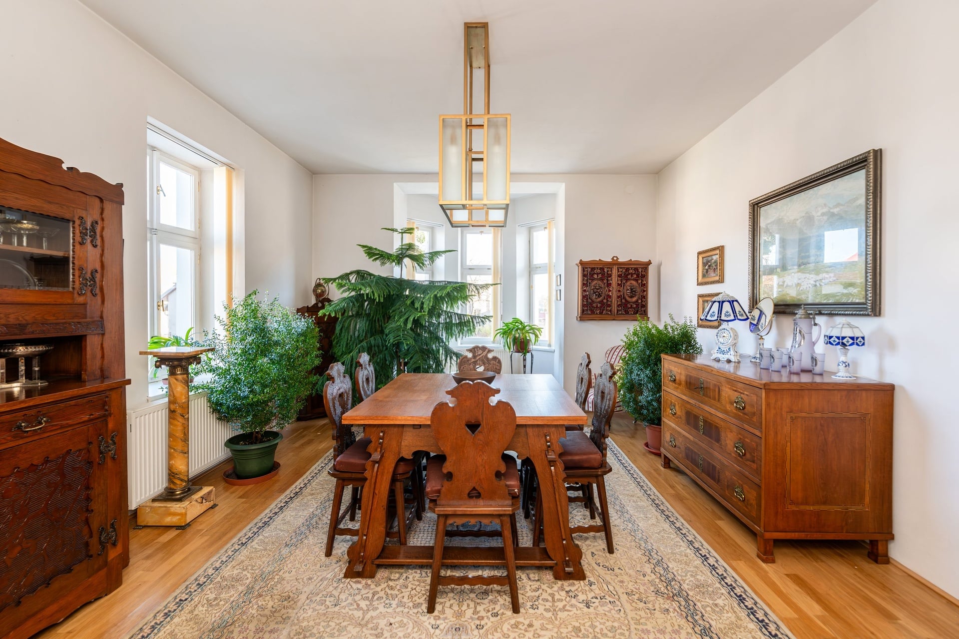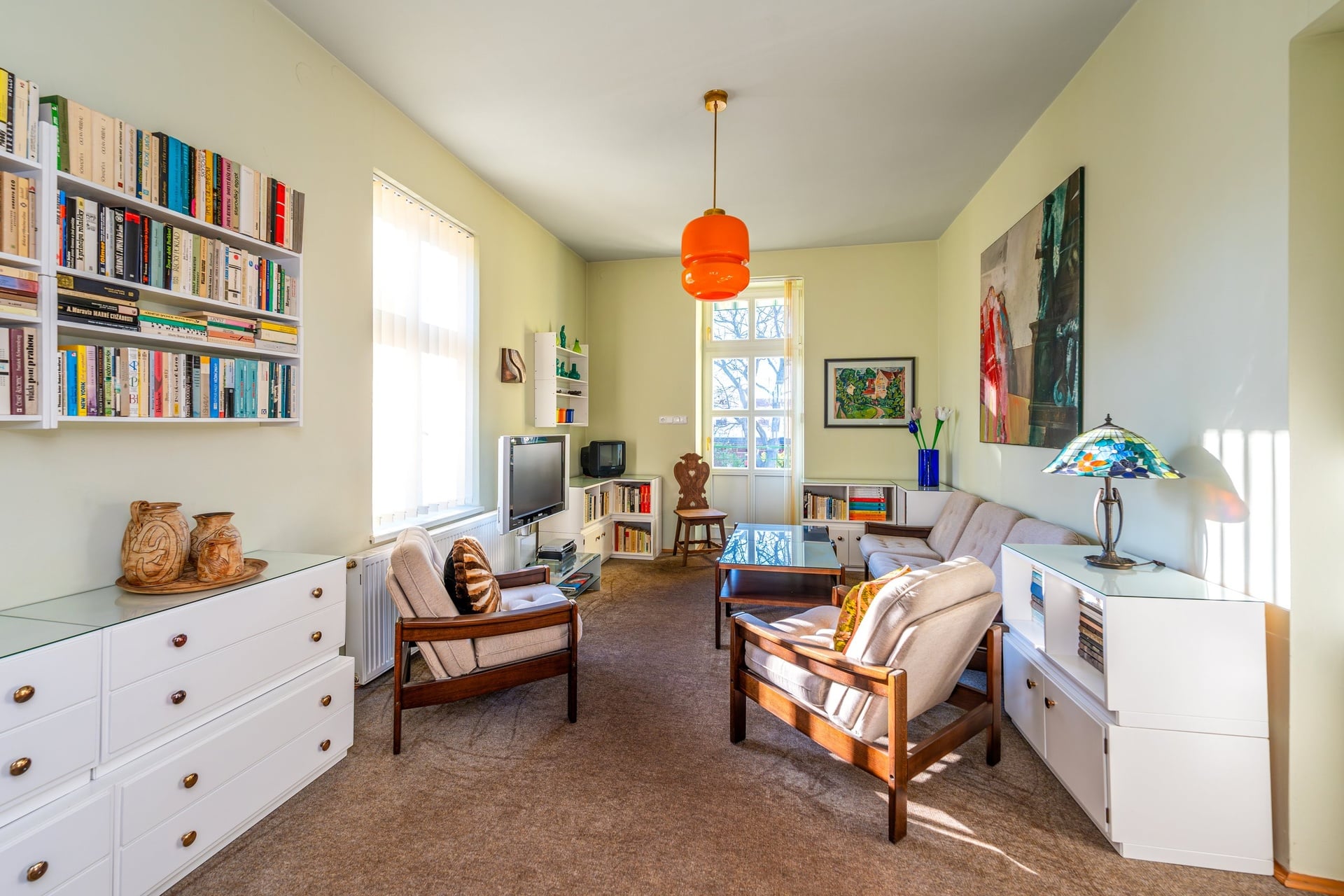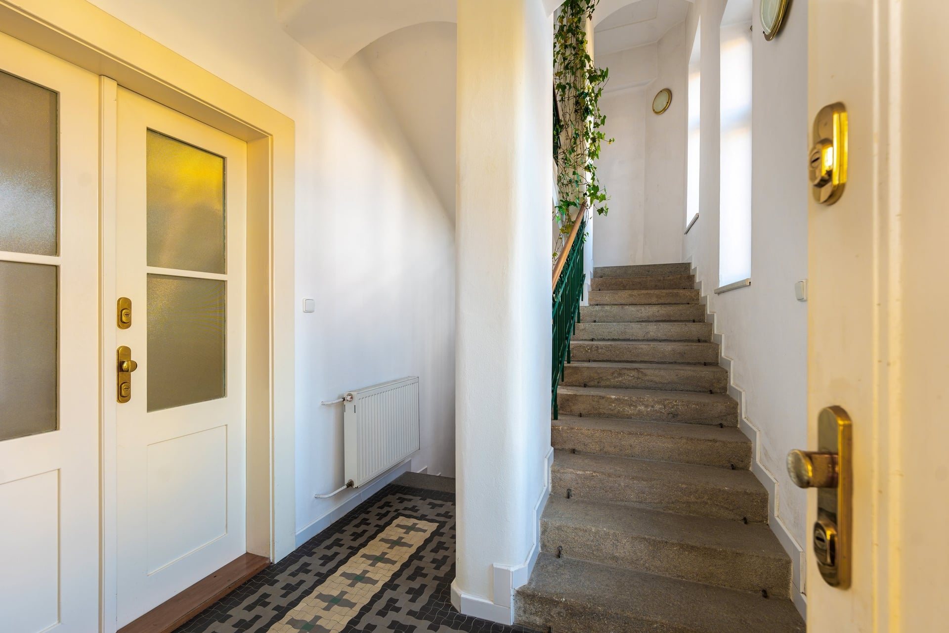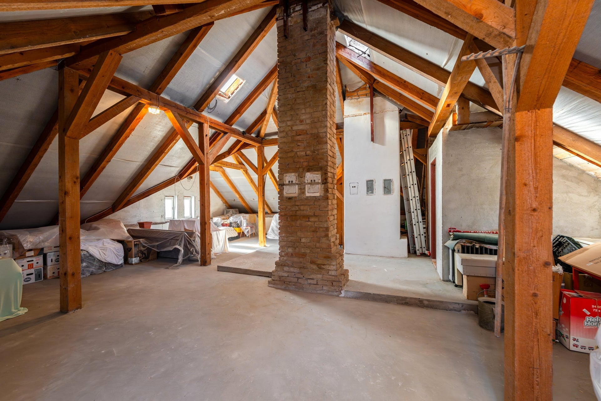 První patro disponuje stejnou plochou 121,10 m² a nabízí světlé, prostorné místnosti s vysokou variabilitou využití – vhodné pro soukromé apartmány, pracovny, ložnice nebo další funkční zóny. Citlivě zrekonstruované podkroví o ploše 72,16 m² přináší charakteristické prvky krovu a intimní atmosféru, což jej předurčuje pro privátní apartmá, ateliér, pracovnu či dětské nebo záložní pokoje. Kompletně podsklepený suterén poskytuje nadstandardní technické a úložné zázemí s širokými možnostmi dalšího využití.