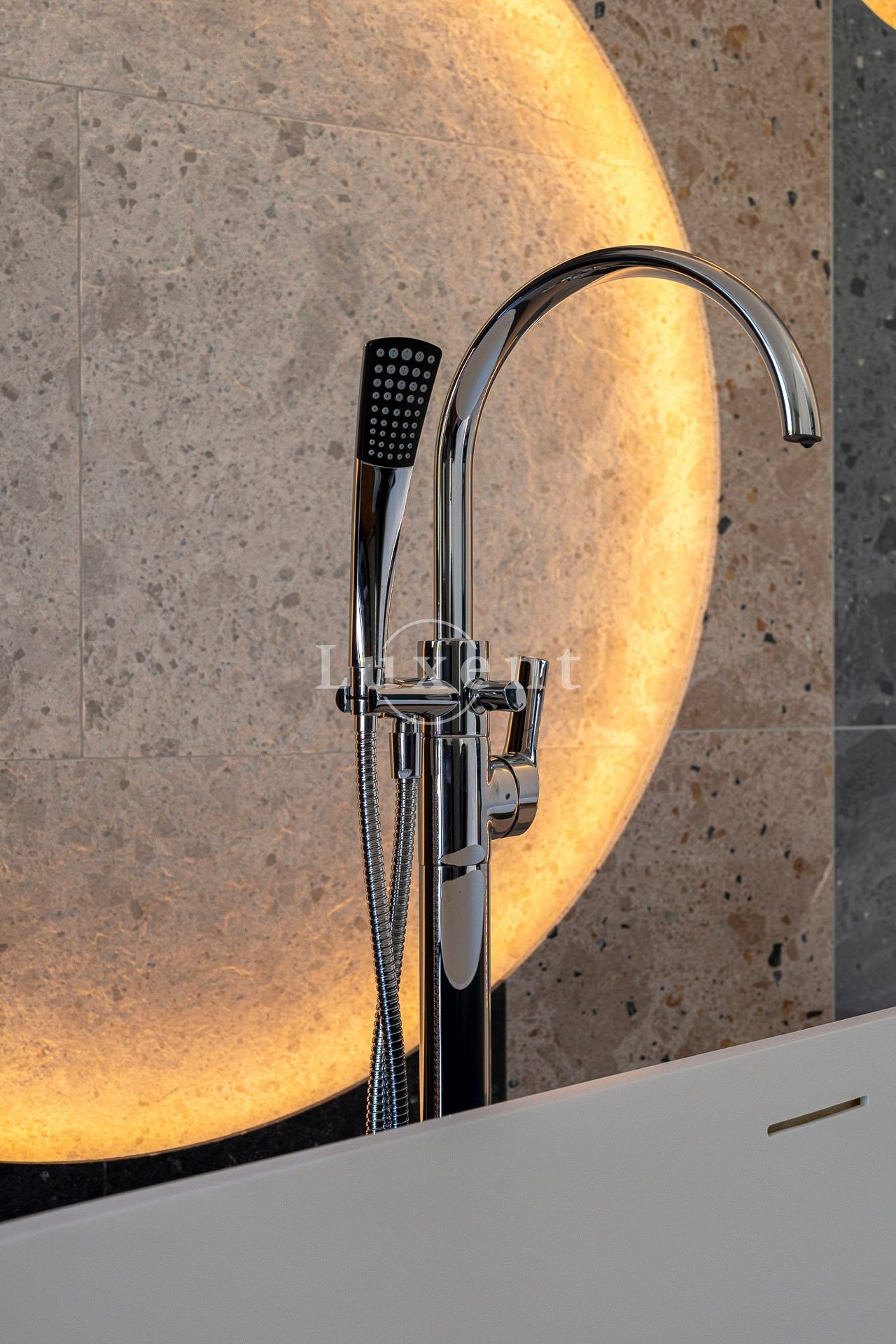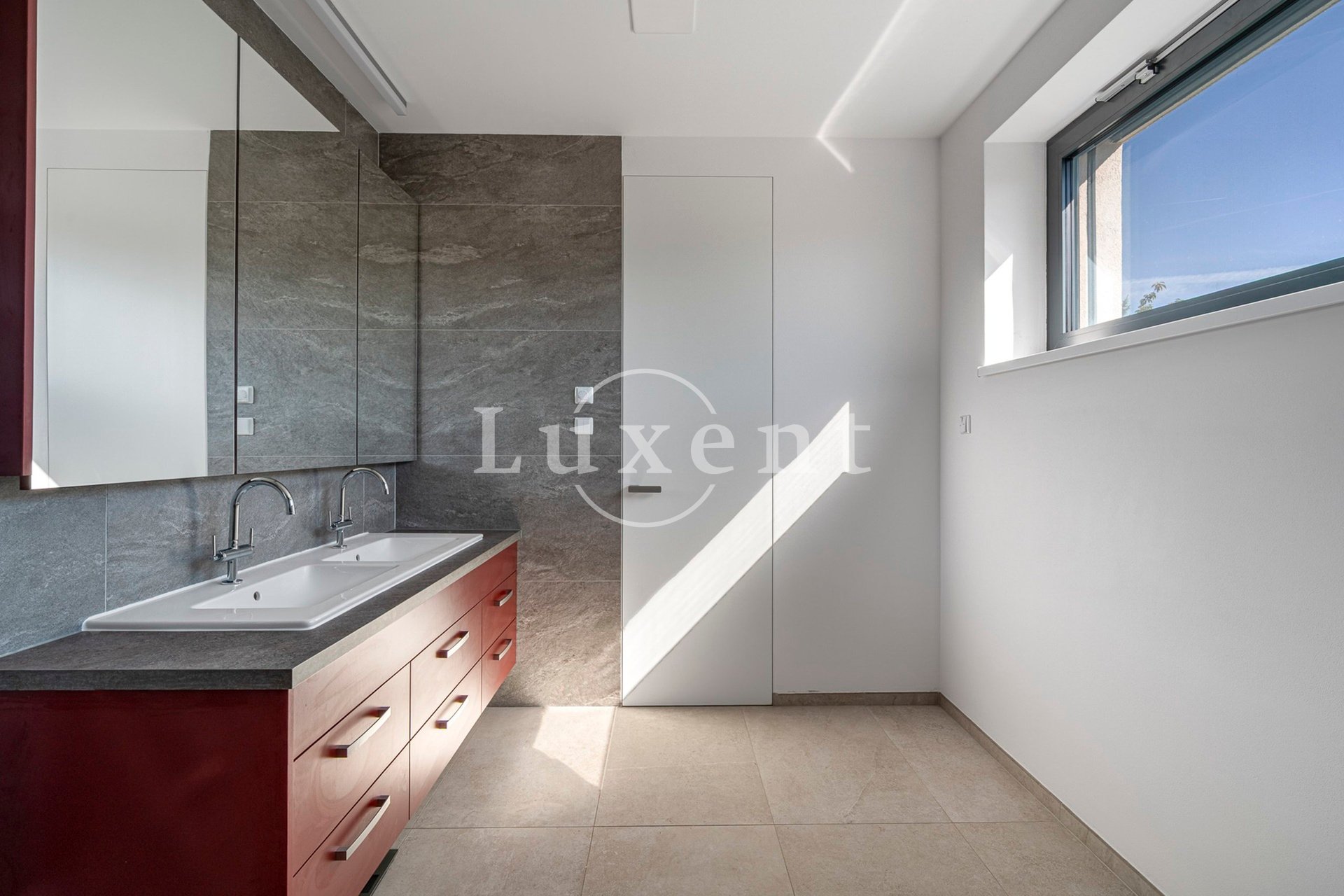 Druhé nadzemní podlaží je koncipováno jako klidová zóna. Hlavní ložnice nabízí jedinečnou atmosféru díky volně stojící vaně, originální kamenné intarzii s motivem vesmíru a navazující en-suite koupelně. Ložnice má zároveň přímý vstup na soukromou terasu orientovanou do zahrady. Dále se zde nachází druhá ložnice s terasou a vlastní koupelnou a další pokoj, který může být využit jako šatna či pracovna a na něj navazující malá místnost s příruční kuchyňskou linkou. Dům je vybaven na míru vyrobeným nábytkem, klimatizací ve všech obytných místnostech, venkovními žaluziemi, rekuperací v ložnicích, dvěma tepelnými čerpadly a solárními panely na střeše, které výrazně snižují provozní náklady.