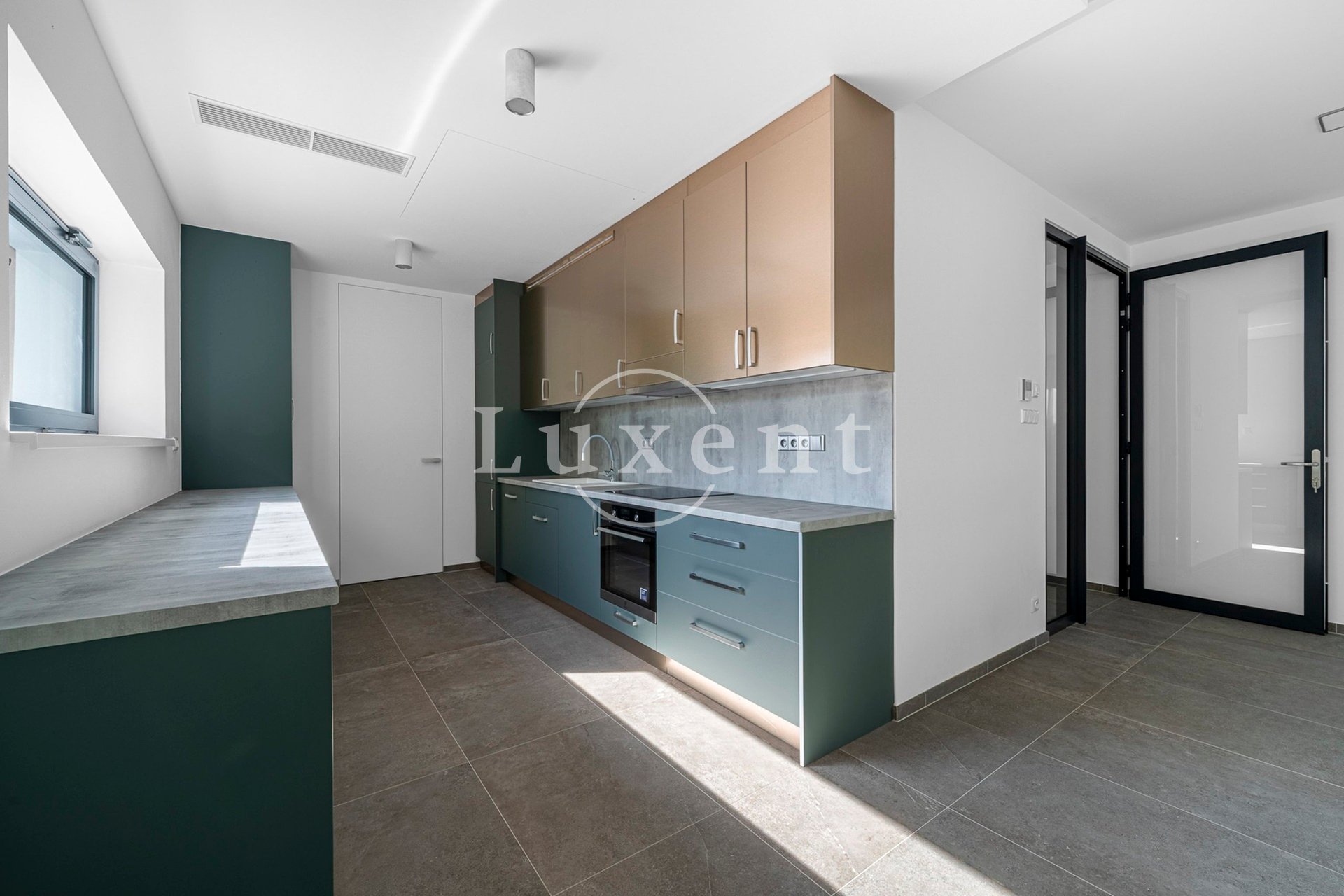 Vila má jedno podzemní podlaží a dvě nadzemní. V prvním podzemním podlaží se nachází vstupní hala s úložnými prostory, garáž pro tři vozy, místnost s technickým zázemím domu, wellness zóna s bazénem o délce 8 metrů, finskou i infrasaunou se solným panelem, koupelnou a místností pro fitness. V tomto podlaží je vstup do samostatné bytové jednotky o dispozici 3+kk umístěné v prvním nadzemním podlaží. Jednotka disponuje jižně orientovanou terasou a lze ji využívat nezávisle na vile. V prvním nadzemním podlaží se nachází velkorysá společenská zóna – prostorný obývací pokoj s jídelnou a kuchyní vybavenou moderní linkou a samostatnou spíží. Odtud je přímý vstup na terasu a dále do zadní části zahrady, která díky vzrostlým stromům a keřům přilehlých nemovitostí zajišťuje naprosté soukromí. V tomto podlaží se dále nachází prostorná místnost s terasou, která může být využita jako pracovna či herna.