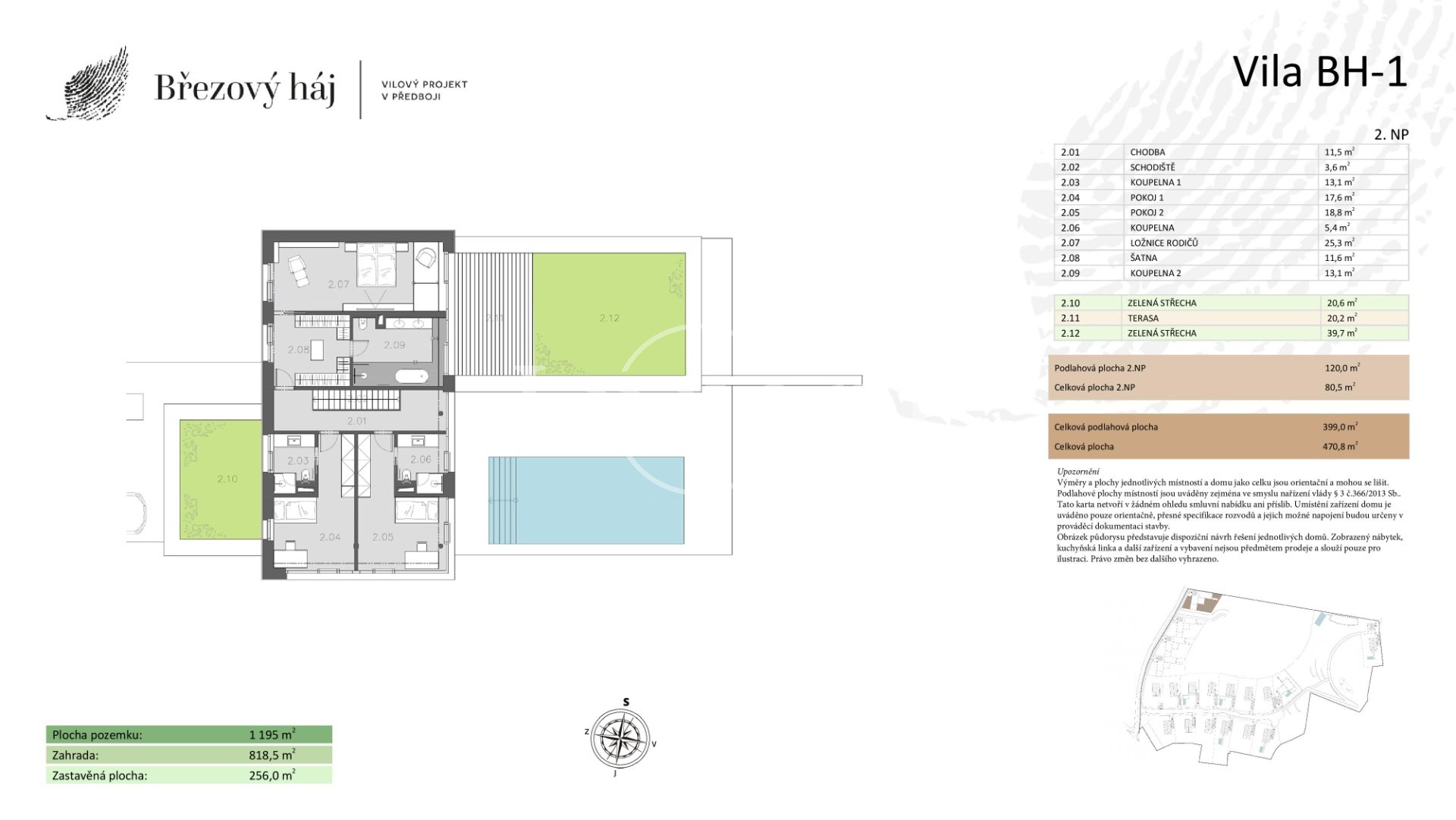 | BH-1 | 5 a více pokojů | 471 m2 | 399 m2 | 96 m2 / Ne / Ne | 1 195 m2 | Prodáno | Detail |
