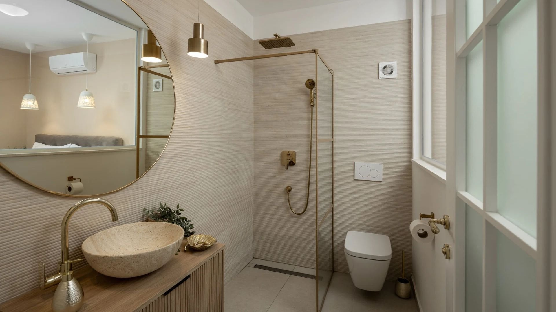 Každý pokoj je vybaven vlastní klimatizací a prostornou koupelnou se sprchovým koutem. Dvůr je dokonale řešen s bazénem jako ústředním bodem, kolem něhož se nachází sluneční terasa, krb a venkovní jídelna – vše navrženo tak, aby poskytovalo ideální prostor pro relaxaci a venkovní zábavu.