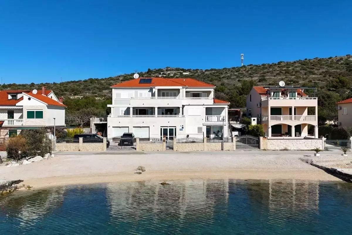Nemovitost je situována v první řadě u moře, v bezprostřední blízkosti pobřeží, a nabízí ničím nerušené panoramatické výhledy na modré vody Jadranu a typickou dalmatskou krajinu.