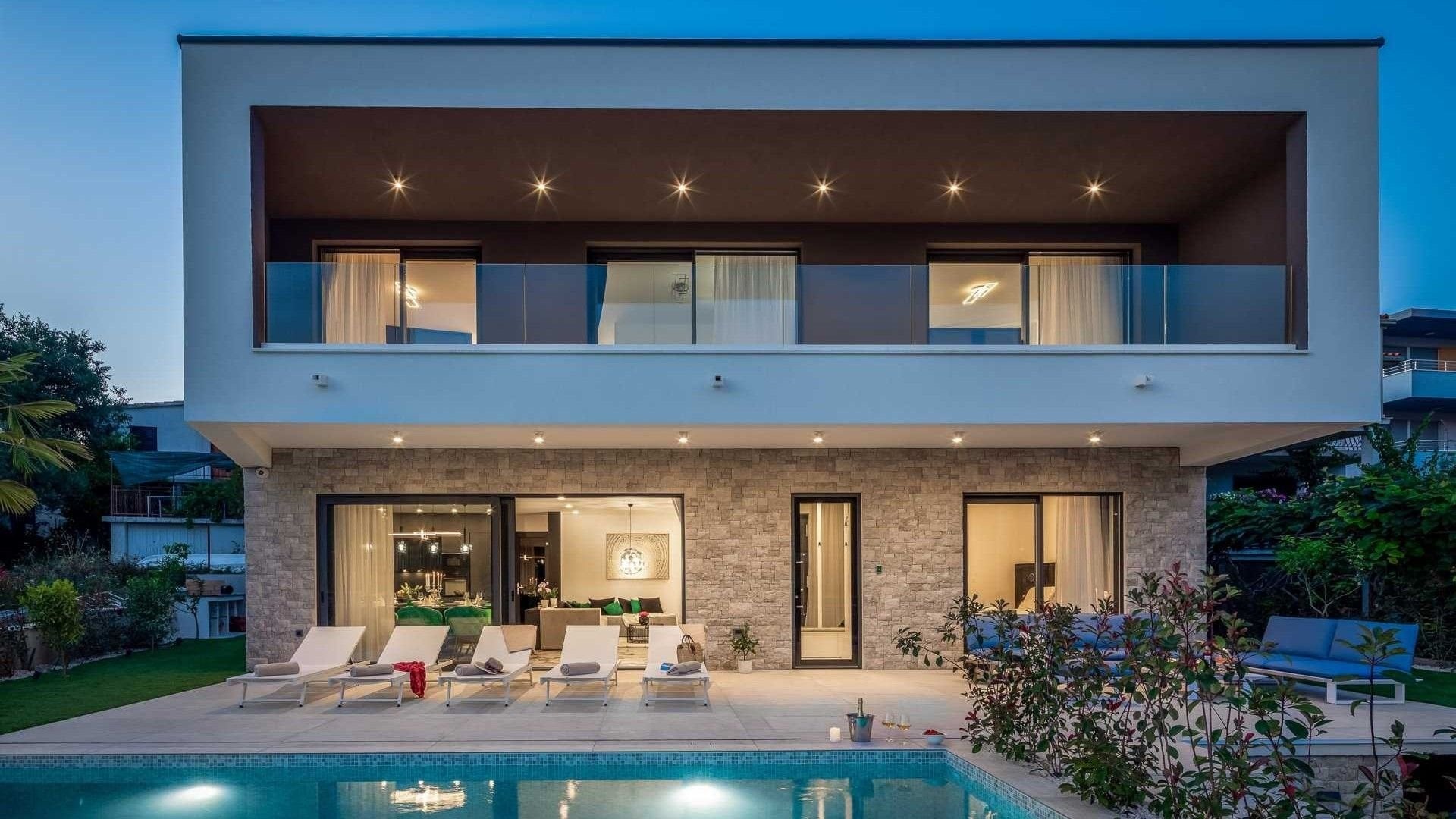 Nabízíme k prodeji elegantní a nově dokončenou vilu s bazénem, situovanou v první linii u moře v klidné zátoce nedaleko oblíbeného letoviska Rogoznica. Tato výjimečná nemovitost, zkolaudovaná v roce 2024, nabízí vysoký standard bydlení i výborný investiční potenciál pro prémiové turistické pronájmy.