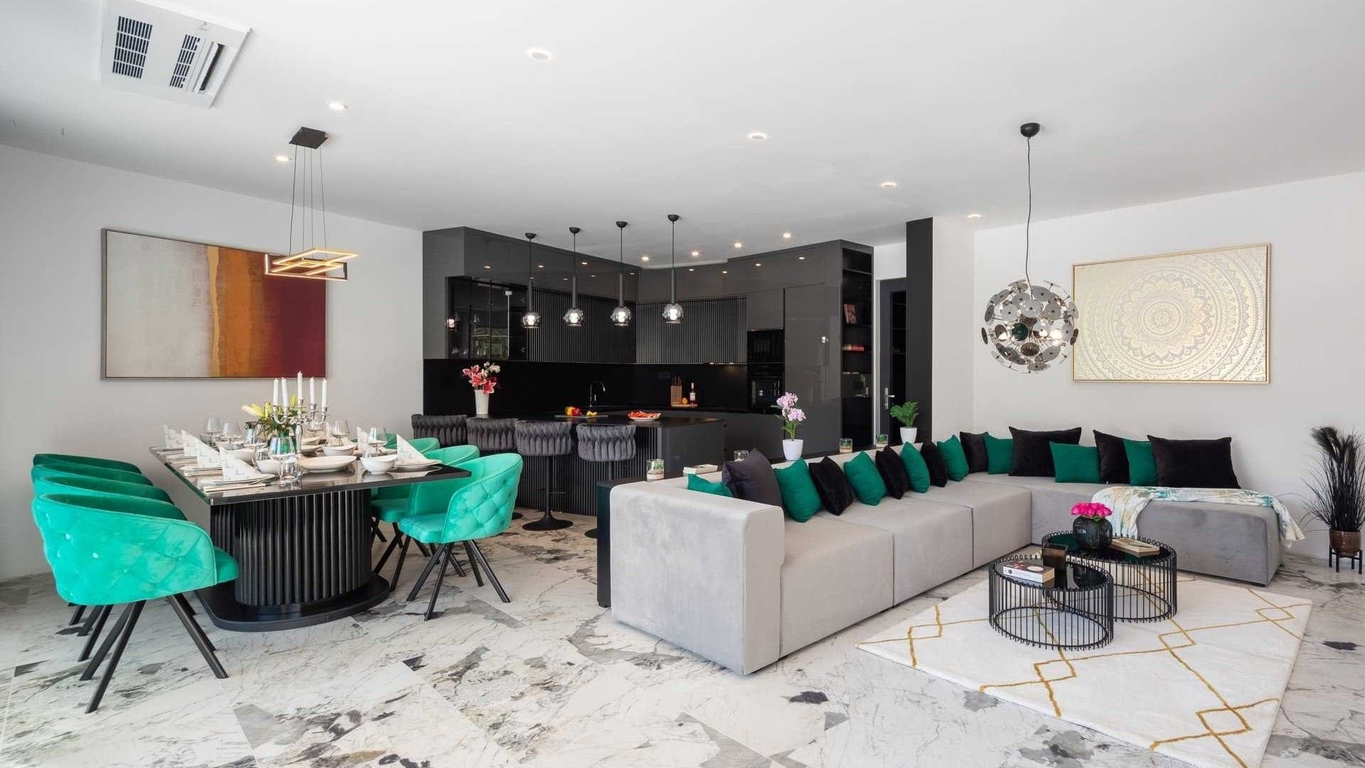 Vila disponuje čtyřmi prostornými ložnicemi, z nichž každá má vlastní koupelnu a přístup na soukromou lodžii. Jedna ložnice se nachází v přízemí, zatímco zbývající tři jsou umístěny v horním patře. Interiér domu je vybaven kvalitním nábytkem a zařízením, přičemž důraz byl kladen na komfort i funkčnost.