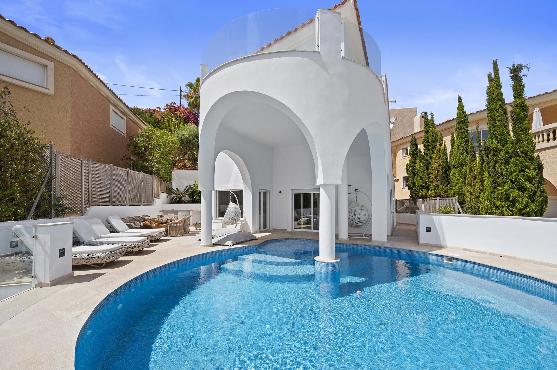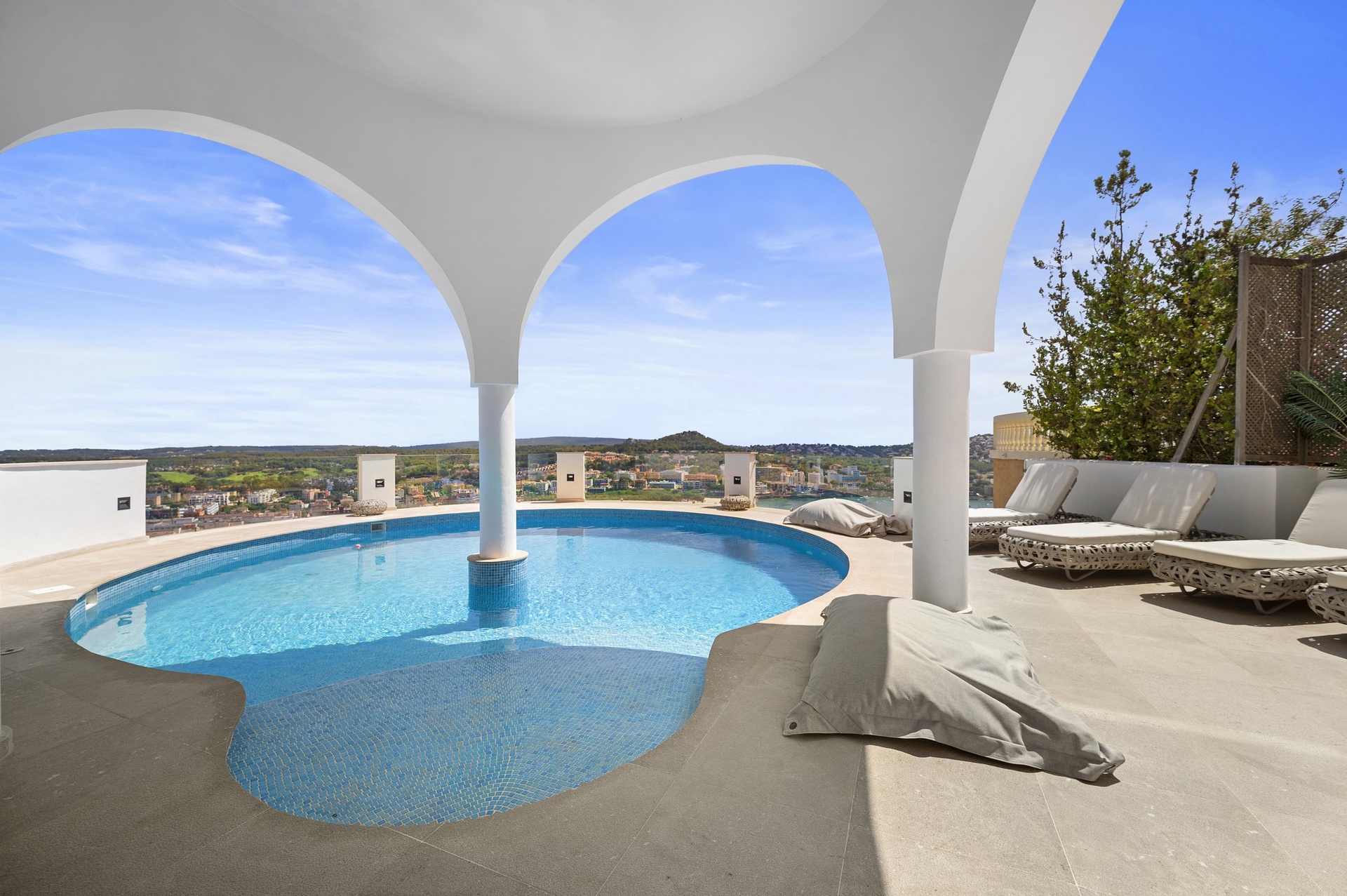 Nabízíme k prodeji luxusní 4+kk vilu na španělské Mallorce, která nabízí fantastický výhled na pláž Santa Ponsa, moře a Palmu.
